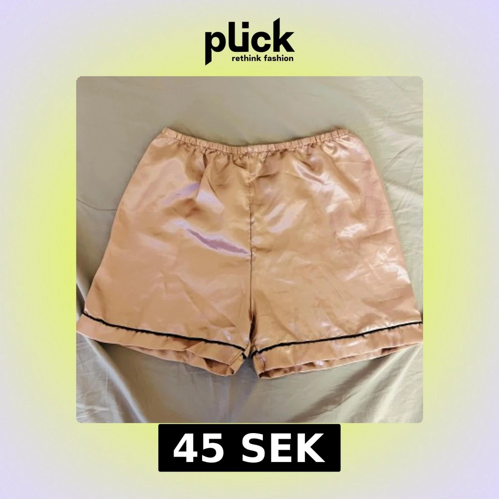 Snygga rosa pyjamas shorts i satin med elastisk midja och svart kant längst ner.
