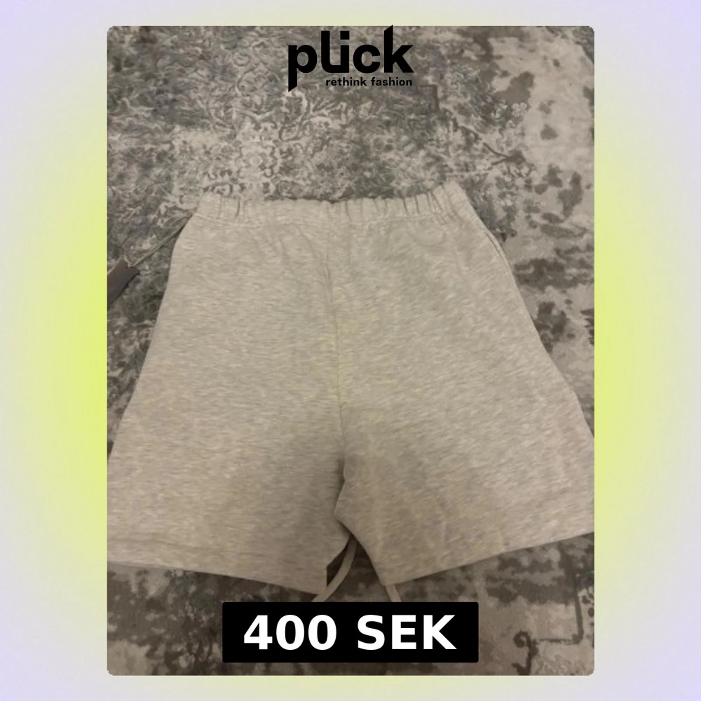 Snygga ljusgrå shorts från Essentials Fear of God med elastisk midja och snörning. Tillverkade i mjuk bomull för maximal komfort. Minimalistisk design med logga tryckt på benet och avslappnad passform.