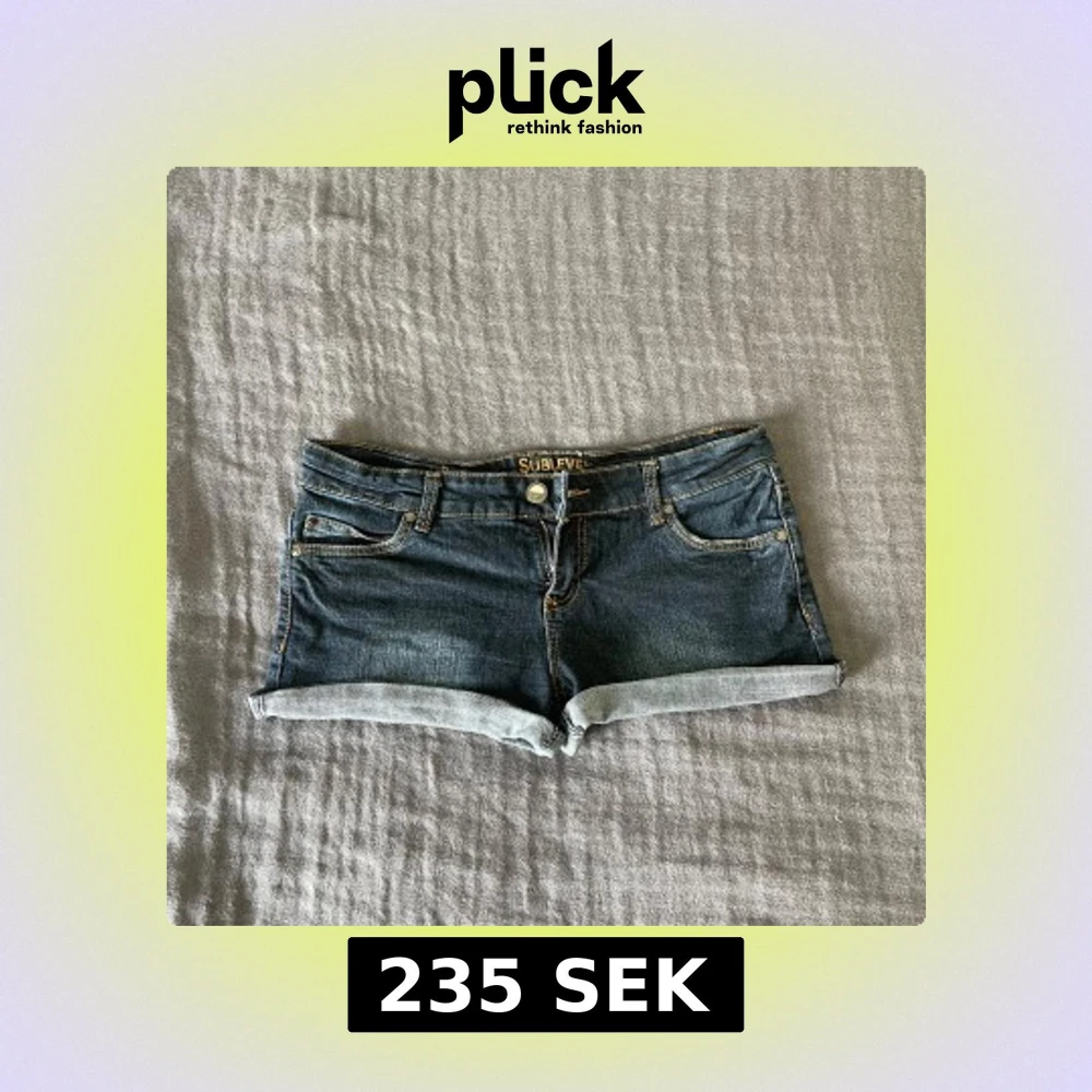 Snygga mörkblåa och lågmidjade jeansshorts från Sublevel. De sitter jättebekvämt och är i storlek M. Perfekta för sommaren!