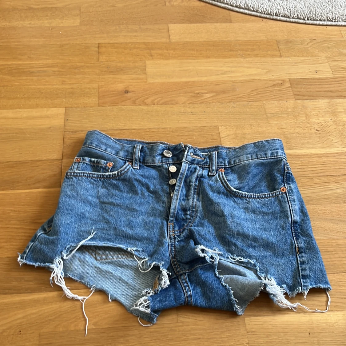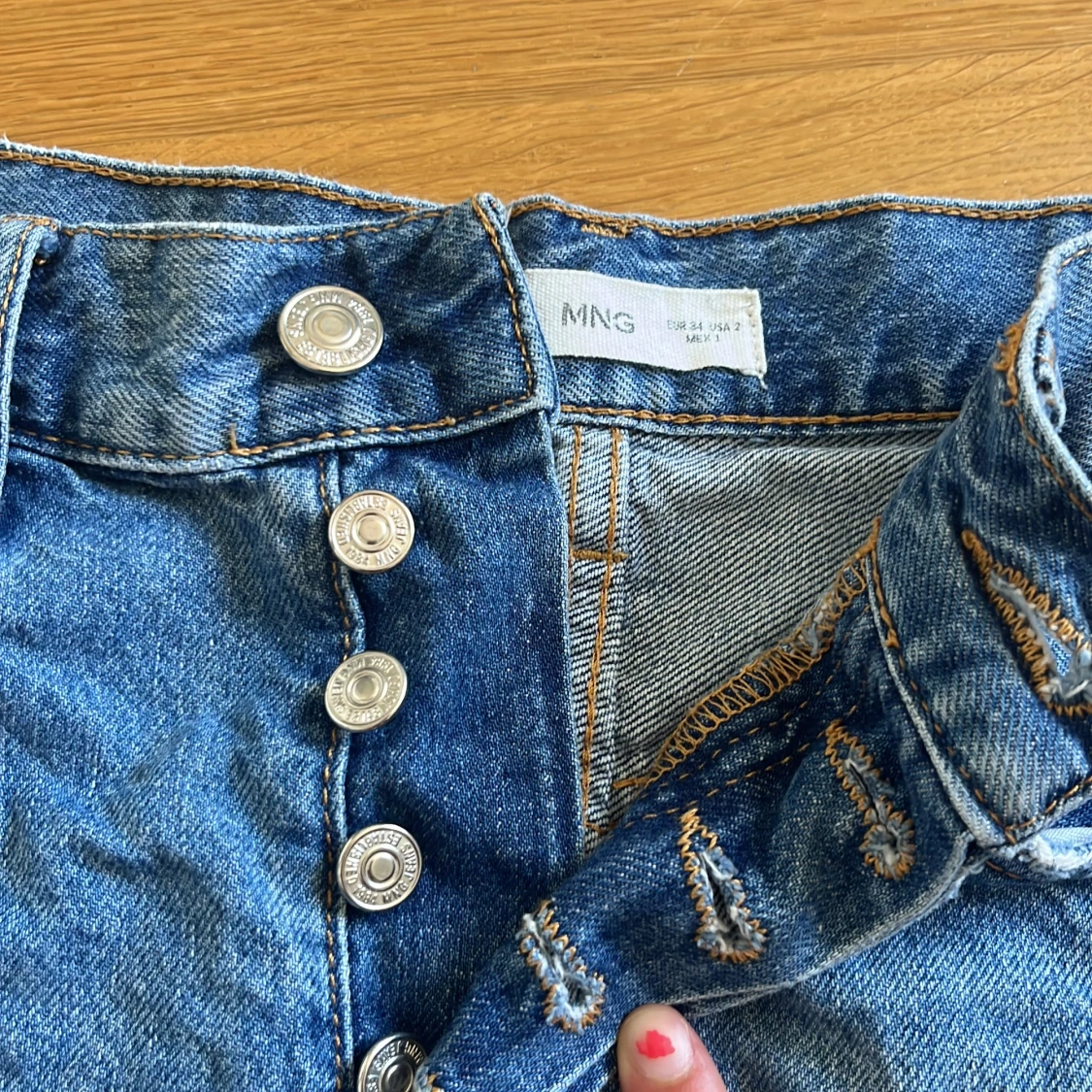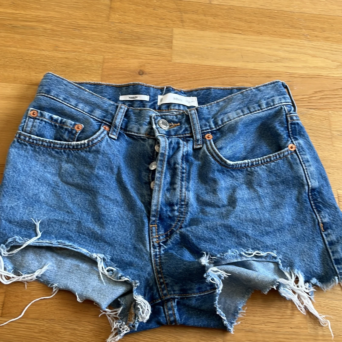 Snygga blå jeansshorts från MNG med hög midja och råa, slitna kanter. Klassisk femficksmodell med knappar framtill och coola slitningar på benen för en avslappnad vibe. Perfekta till sommaren och lätta att matcha med allt.
