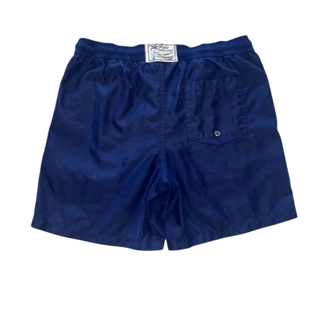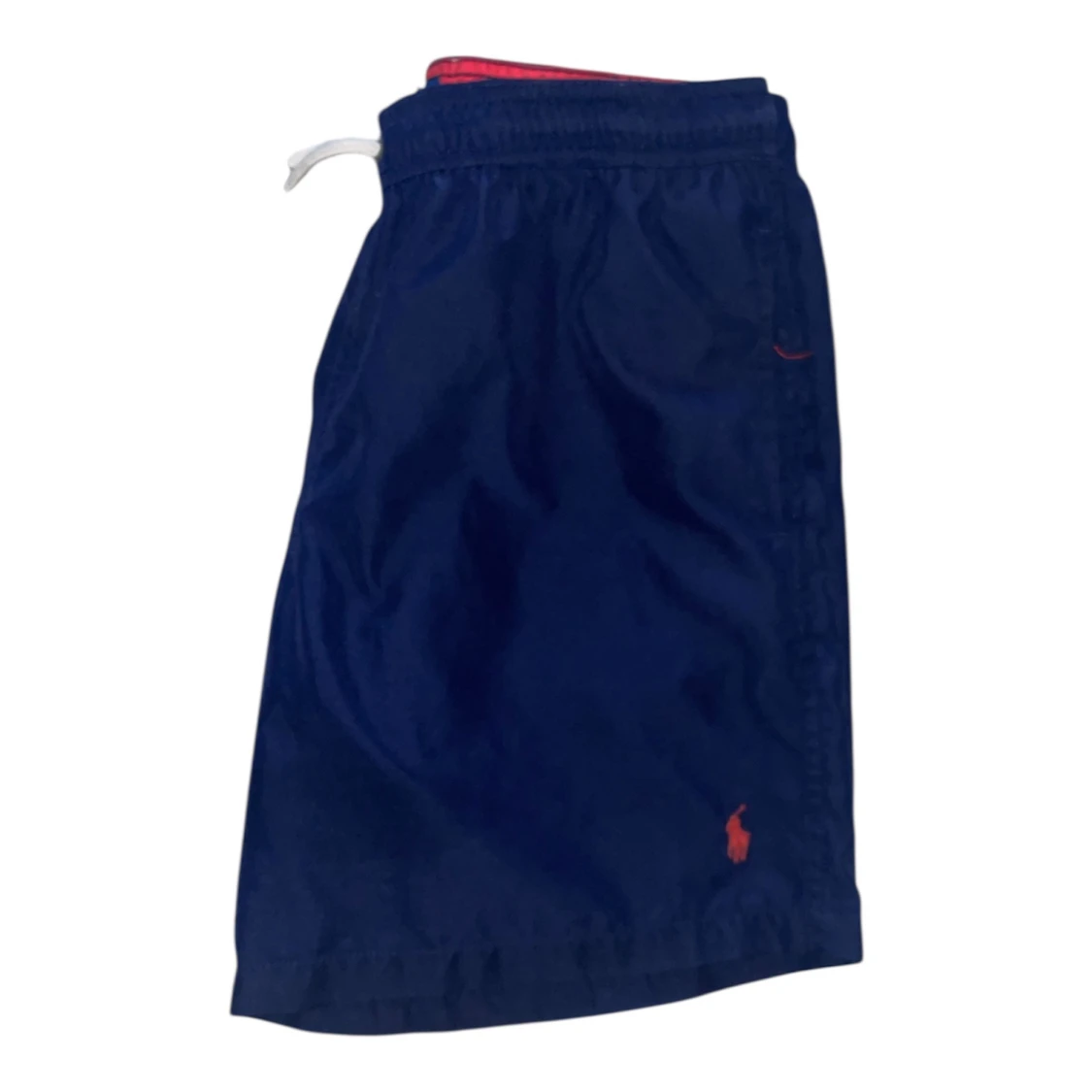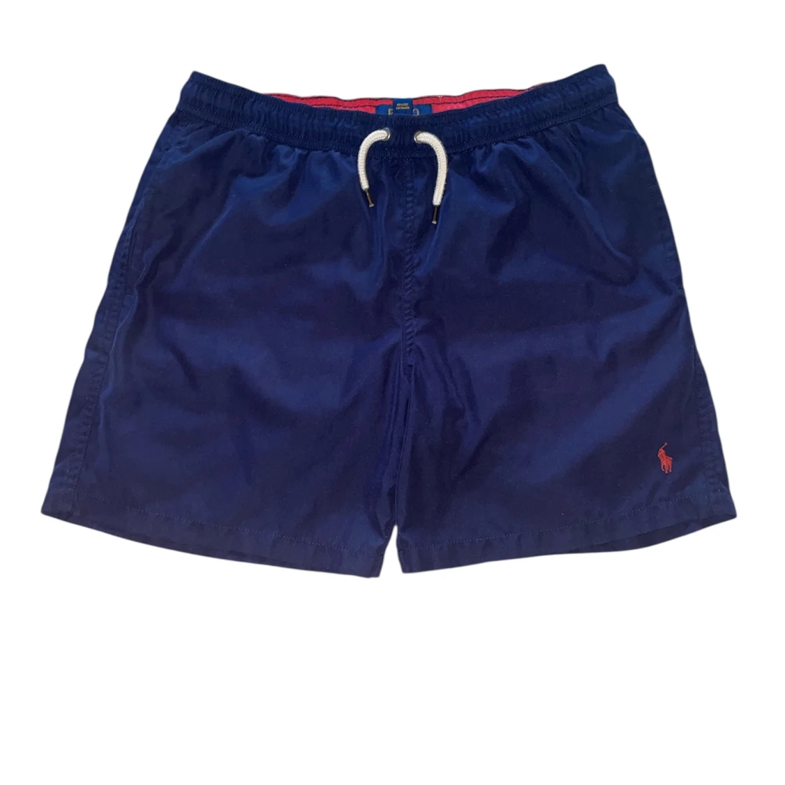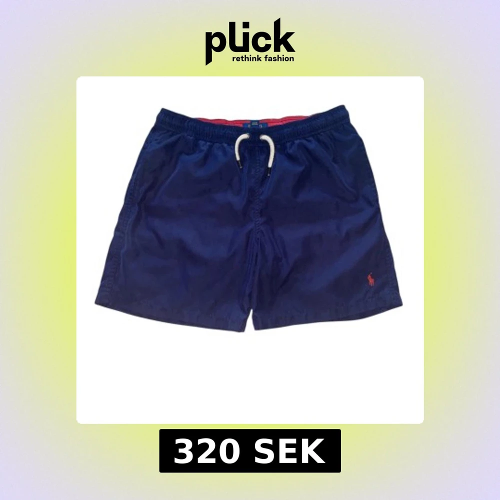 Snygga marinblå badshorts från Polo Ralph Lauren med vit snörning i midjan och röd broderad logga på benet. Shortsen har elastisk midja, bakficka med knapp och är tillverkade i ett lätt syntetmaterial. Perfekta för stranden eller poolen.