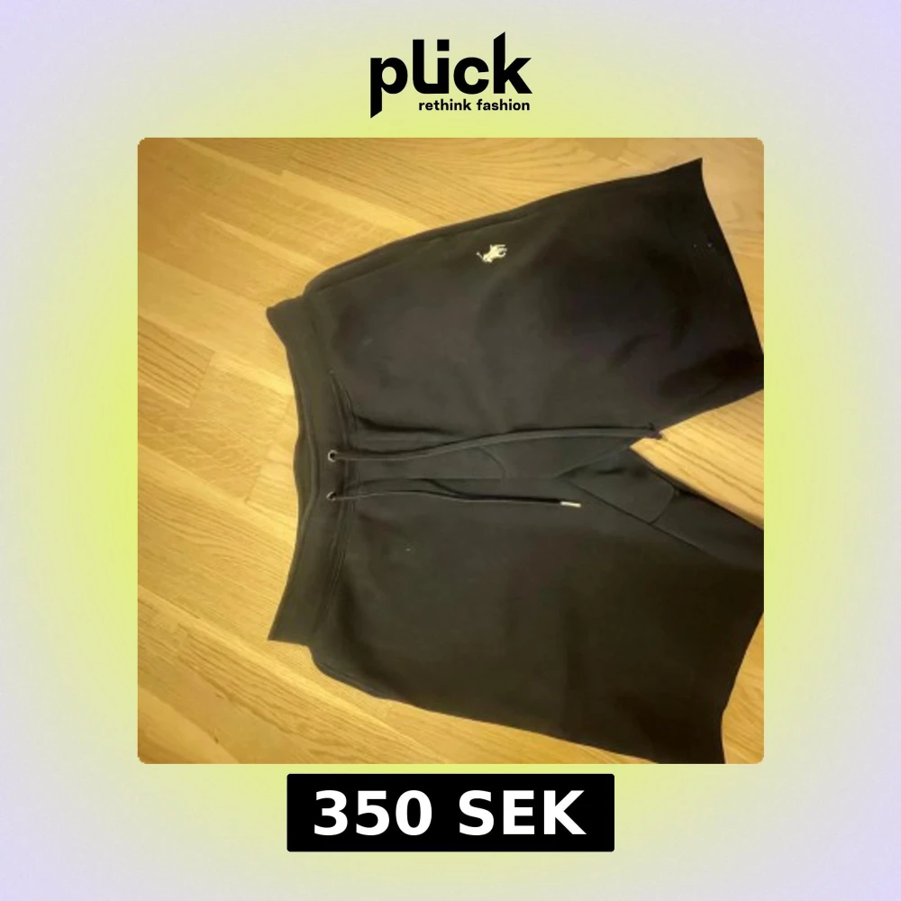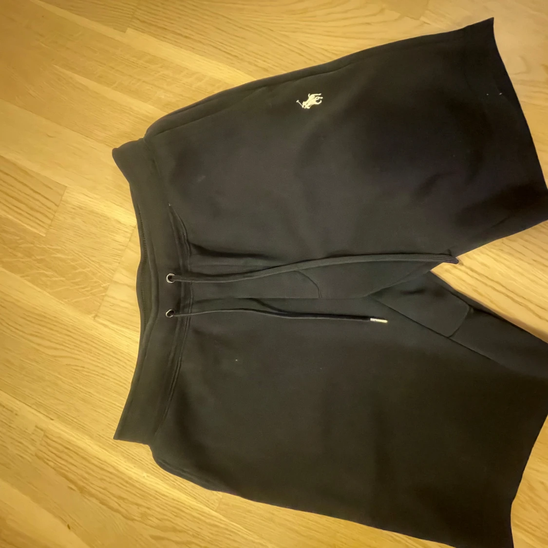 Marinblå shorts från Polo Ralph Lauren med klassisk logga broderad framtill. Mjukt bomullsmaterial, elastisk midja med snörning och en bakficka. Perfekta för chill dagar eller träning. Köpta i new York stl xs några små fläckar som man bara ser om man granskar prutbart pris finns hoddie och byxor i min profil