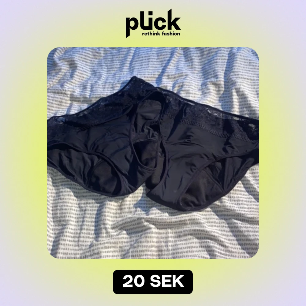 Två svarta mens trosor som funkar jättebra när man har mens de är bekväma och ha på sig och jätte skönt material. 20kr/st