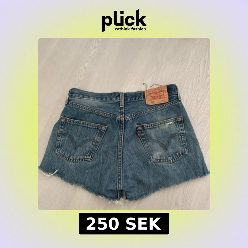 Snygga blå jeansshorts från Levi's modell 501 med klassisk femficksdesign, slitna detaljer och rå kant nedtill. Shortsen har låg midja och en loose passform, perfekt för chill stil. Ikonisk Levi's-lapp baktill och coola slitningar framtill. Som referens så brukar jag på bilden ha storlek s!