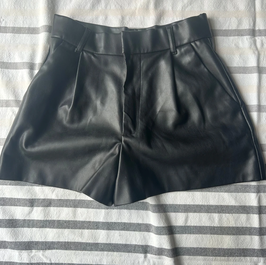 Snygga svarta shorts i skinnimitation från Zara 🩷
