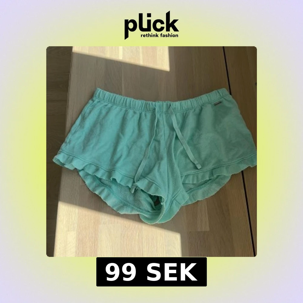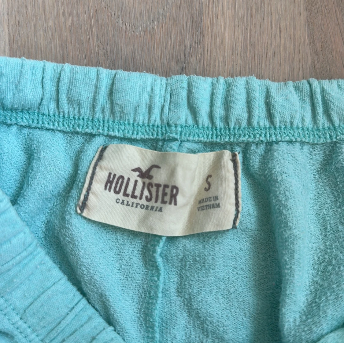Supermjuka mintgröna shorts från Hollister i frotté med snörning i midjan och söt volangkant nedtill. Perfekta för varma dagar eller chilla hemma. Elastisk midja för skön passform och diskret metallogo framtill.