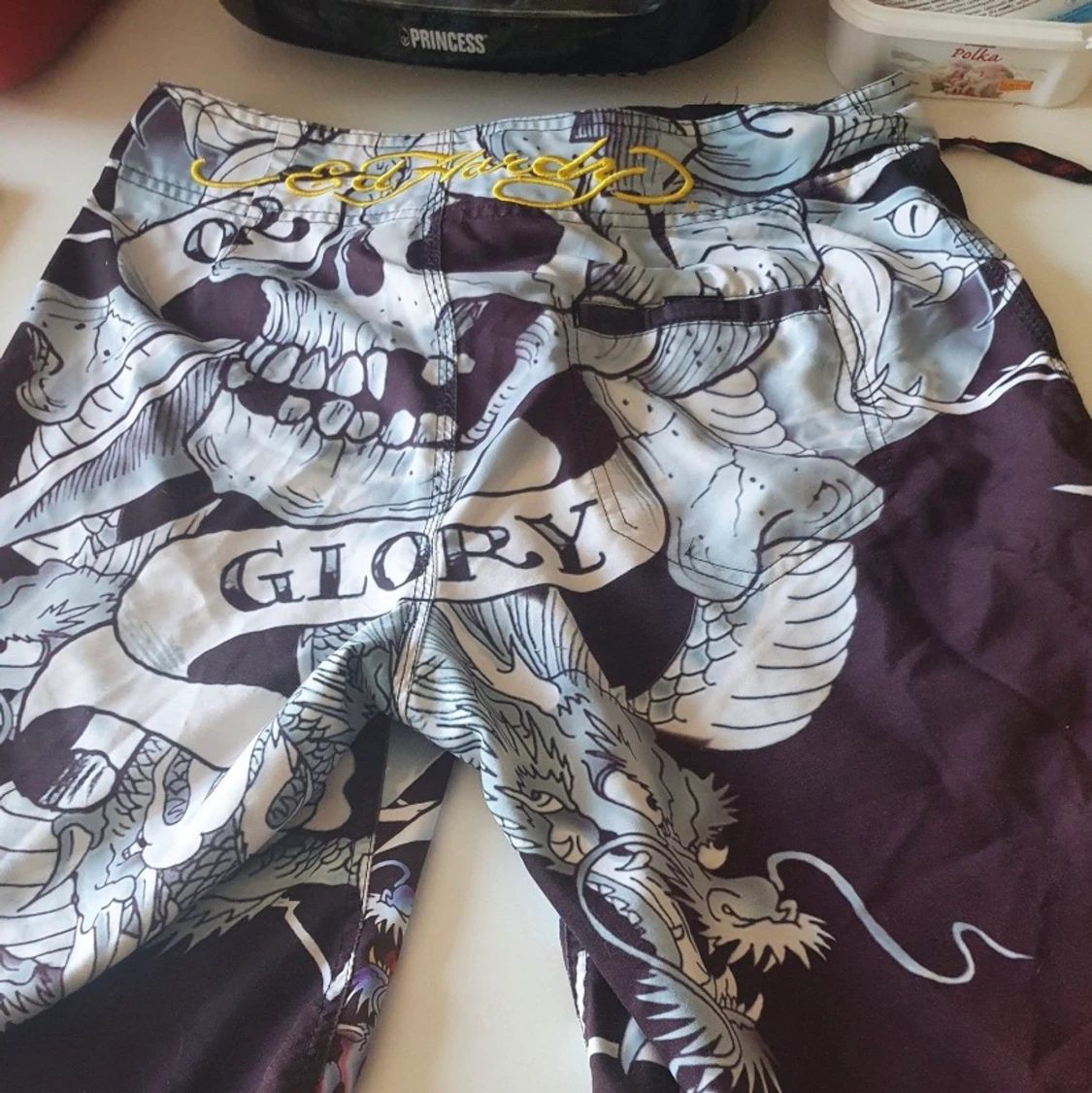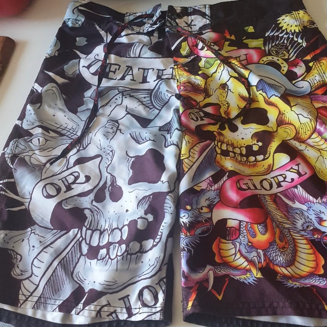 Ed Hardy Badshorts, najsa nu till sommaren med bikini överdel så funkar för både herr och dam<3 W32, midjemåttet äe 84cm