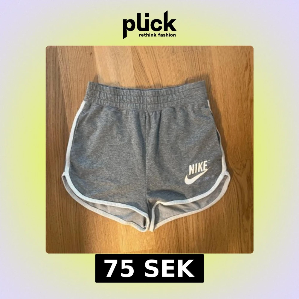 Snygga grå Nike Sportswear shorts i mjuk bomull med vit kant och logga framtill. Modellen har elastisk midja och rundade benkanter för en sportig vibe. Perfekta för chill eller träning, riktigt sköna och stilrena.