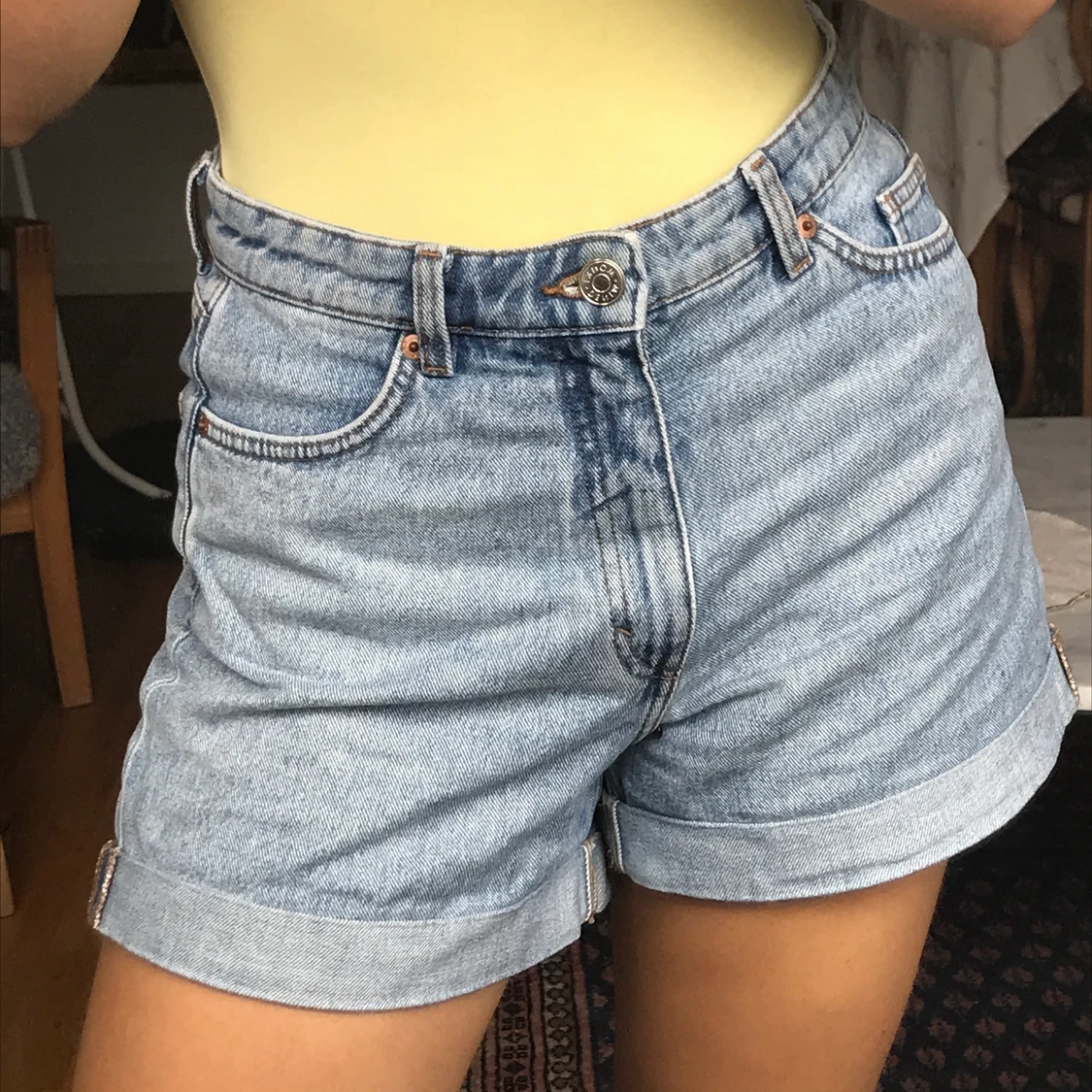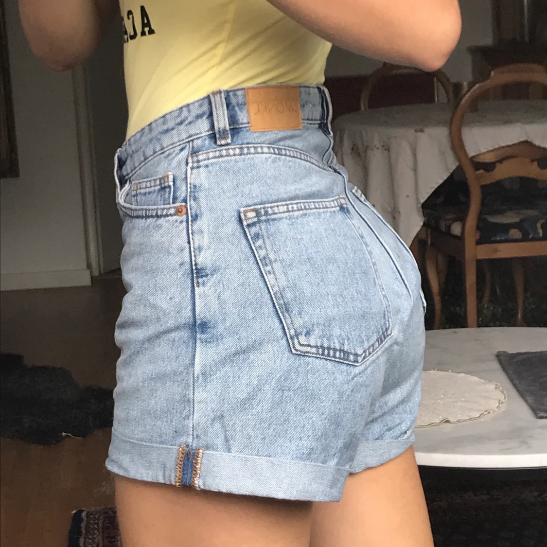 Så snygga, ljusblå jeansshorts från MONKI. Storlek 27, vilket motsvarar S. Skriv för fler bilder!💕