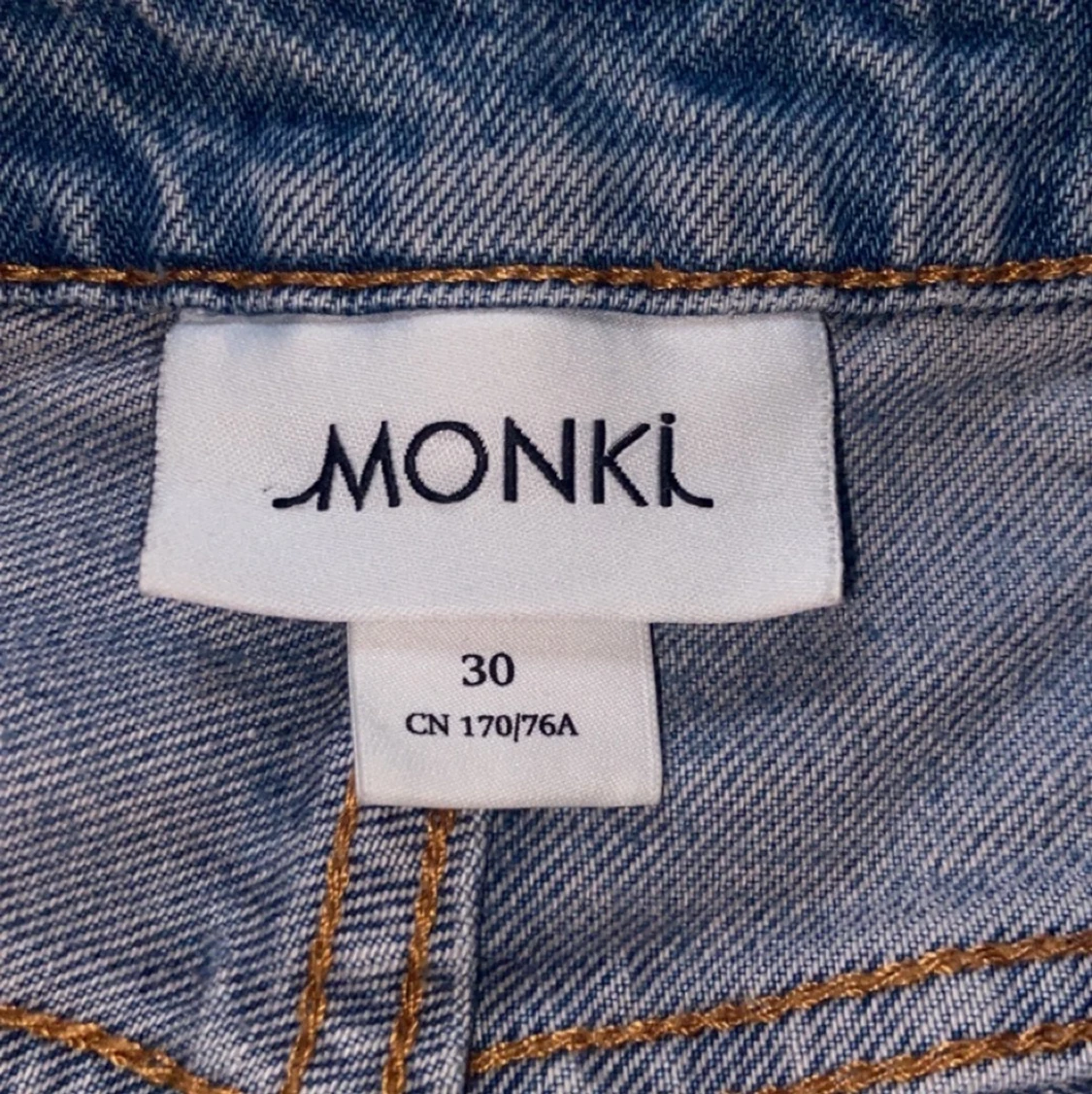 Superfina monki jeans-shorts med en påsydd ”ägg-lapp”. Dom är i storlek 30 och kostade 400kr när jag köpte dem. Säljer pga att de inte passar längre och blir glad om någon annan tycker om dem lika mycket som jag gör:))