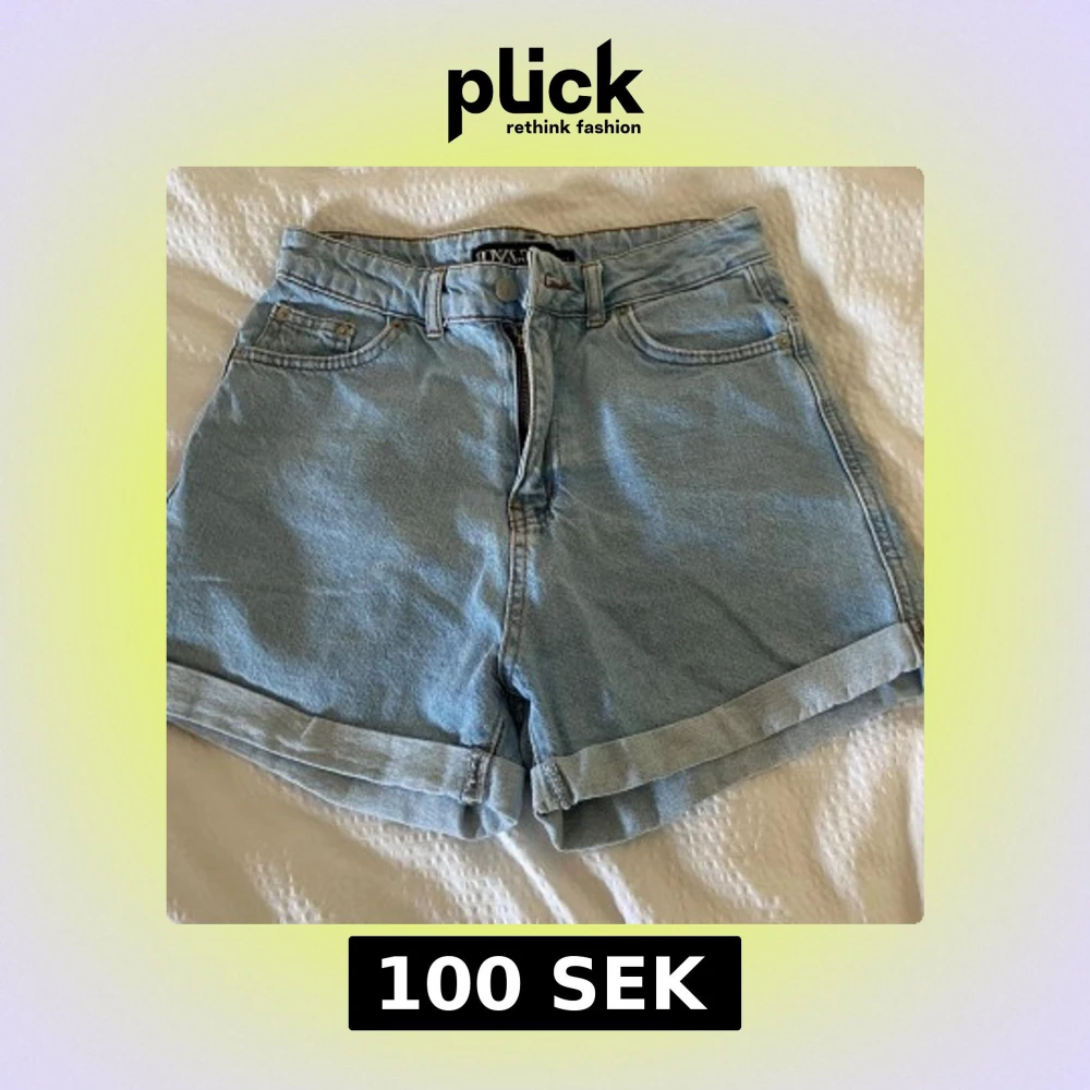 Säljer ett par ljusblå jeansshorts från Monki med hög midja och klassisk femficksdesign. Shortsen har uppvikta benslut och stängs med dragkedja och knapp. Perfekta för varma dagar!