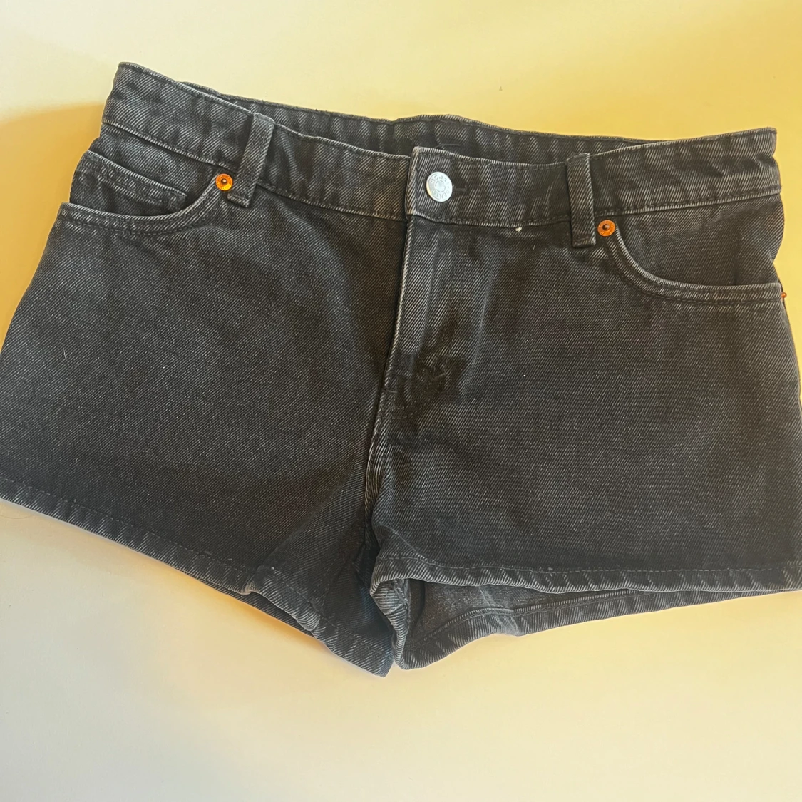 Svarta, lågmidjade shorts från Monki. I mycket bra skick. Storlek 27