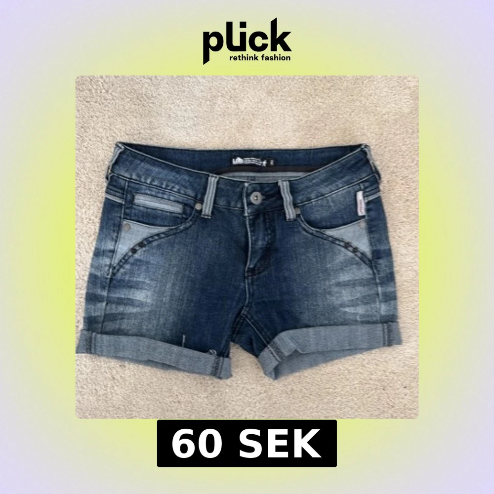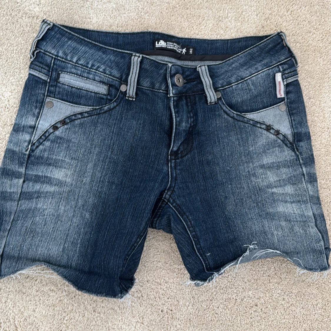 Snygga mörkblå jeansshorts från Lab Industries och uppvikta benslut. Klassisk femficksmodell med broderade bakfickor och tydliga sömmar. Perfekta för sommardagar och enkel att matcha med allt.