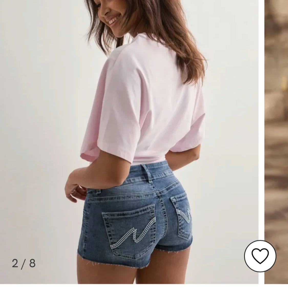 Snygga mörkblå jeansshorts ,dubbla knappar framtill och detaljer på bakfickorna. Från Nelly helt nya