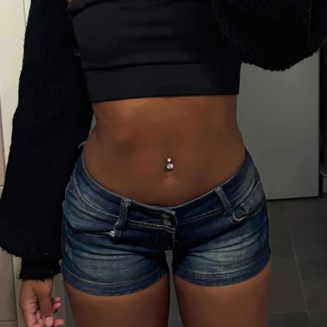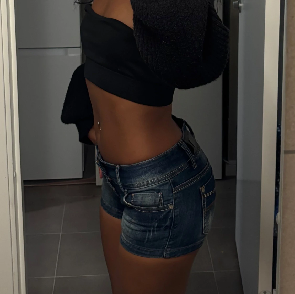 Snygga mörkblå jeansshorts med låg midja och klassiska fickor både fram och bak. Shortsen har en tight passform och är perfekta för varma sommardagar. Stängs med dragkedja och knapp framtill.