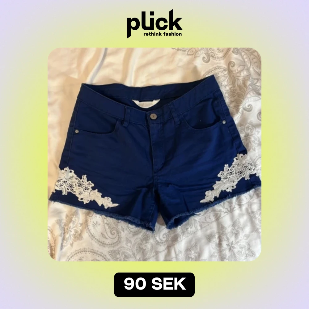 Ett par supersnygga mörkblå shorts med vit brodyr på båda sidor som är medium waisted i storlek XS 🤍💙