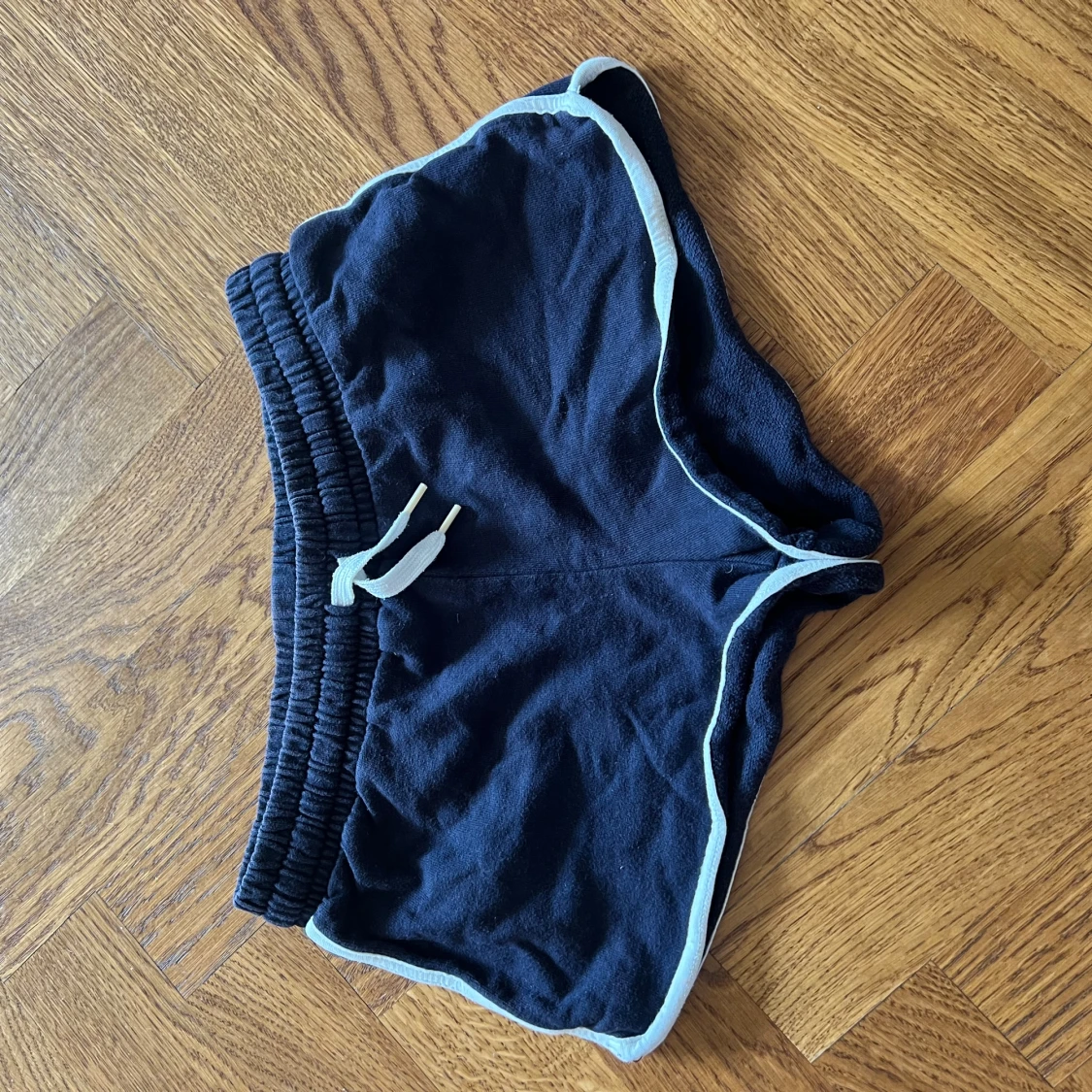 Snygga mörkblå shorts från H&M med vit kant längs benen och vit snörning i midjan. Modellen är loose fit med elastisk midja och tillverkad i mjuk bomull. Perfekta för chill dagar eller träning. Klassisk sportig look som är enkel att matcha. Jag betalar frakt💗