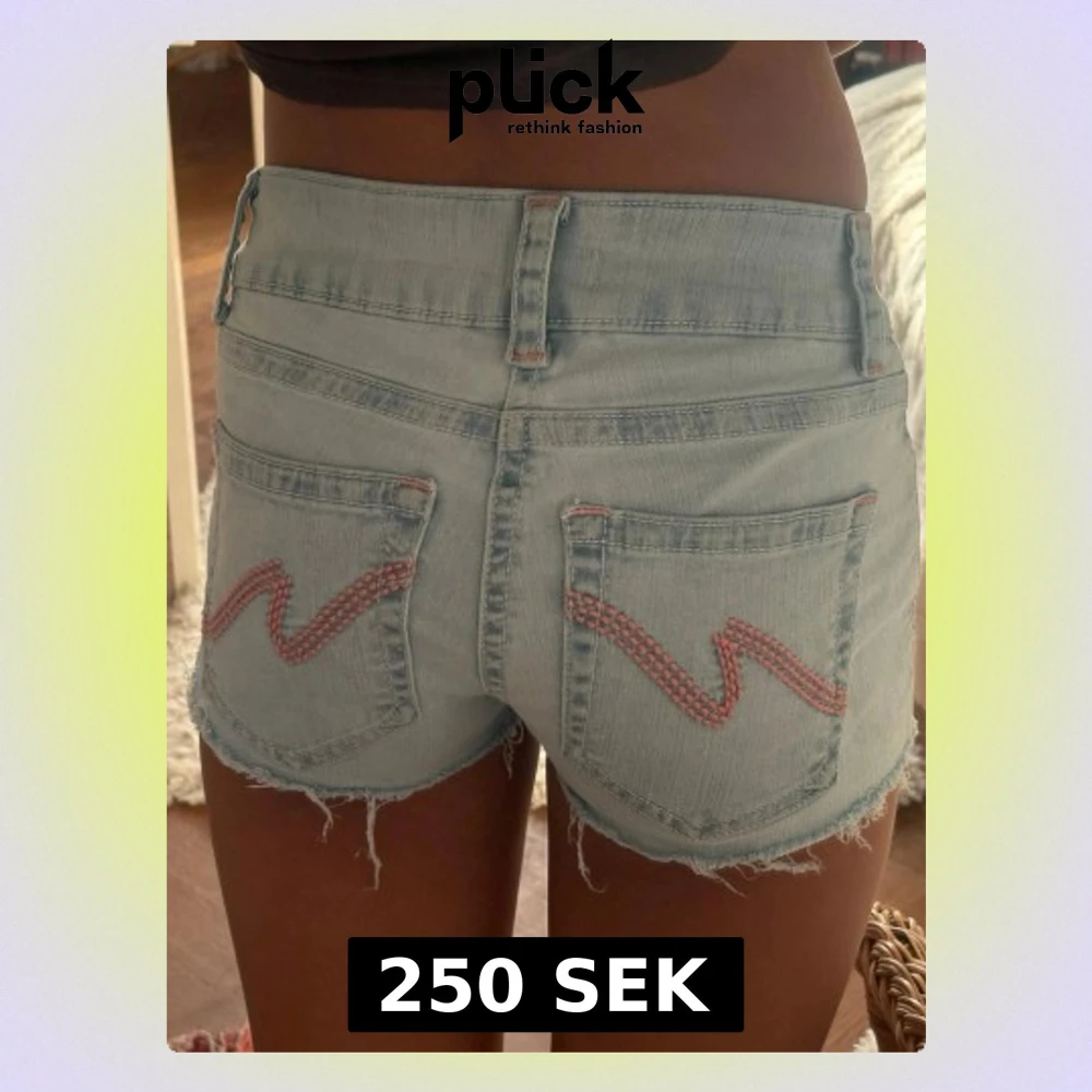 SÀljer ett par ljusblÄ fina shorts med rosa broderi pÄ fickorna. De Àr frÄn Nelly och Àr köpta som shorts.knappt andvÀnda
