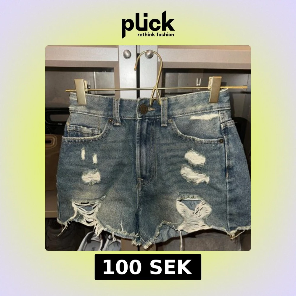 Blå jeansshorts med slitningar