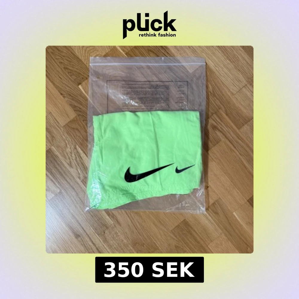 Säljer splitternya nike badshorts. Neongröna. Storleken är L. Oanvända och säljs eftersom butiken tar alldeles för dyr avgift för retur.