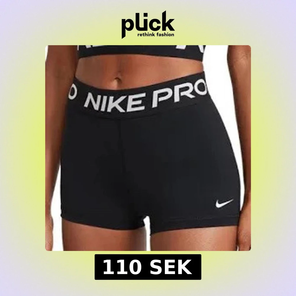Svarta tighta träningstights shorts från Nike med vit logga på benet och bred resår i midjan med texten 'NIKE PRO'. Perfekta för gym, löpning eller annan träning.