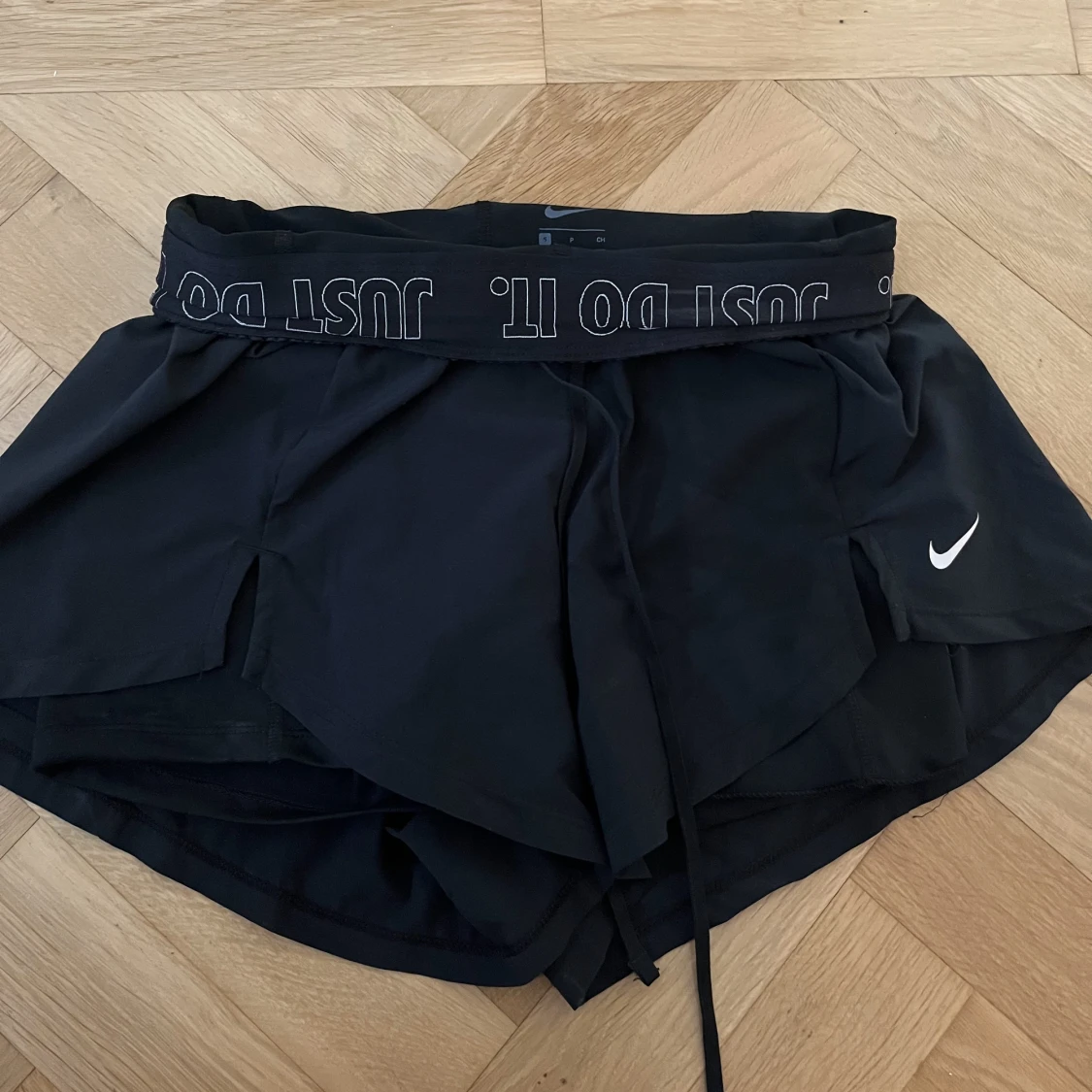 Shorts från Nike, använda fåtal ggr. Har inbyggda cykelbyxor. Ena kanten av dem har släppt lite sömmen men inget man tänker på då det täcks av shortsen ytterdel. Stl S