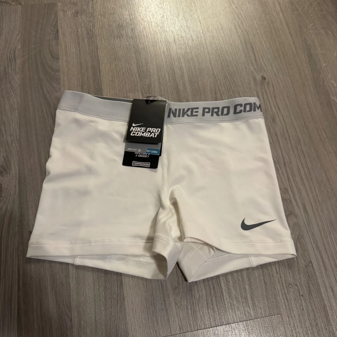 Nike Pro Combat vita kompressionsshorts . HELT NYA MED LAPP!! Storlek S. Pris kan diskuteras och skriv om frågor och funderingar💕💕