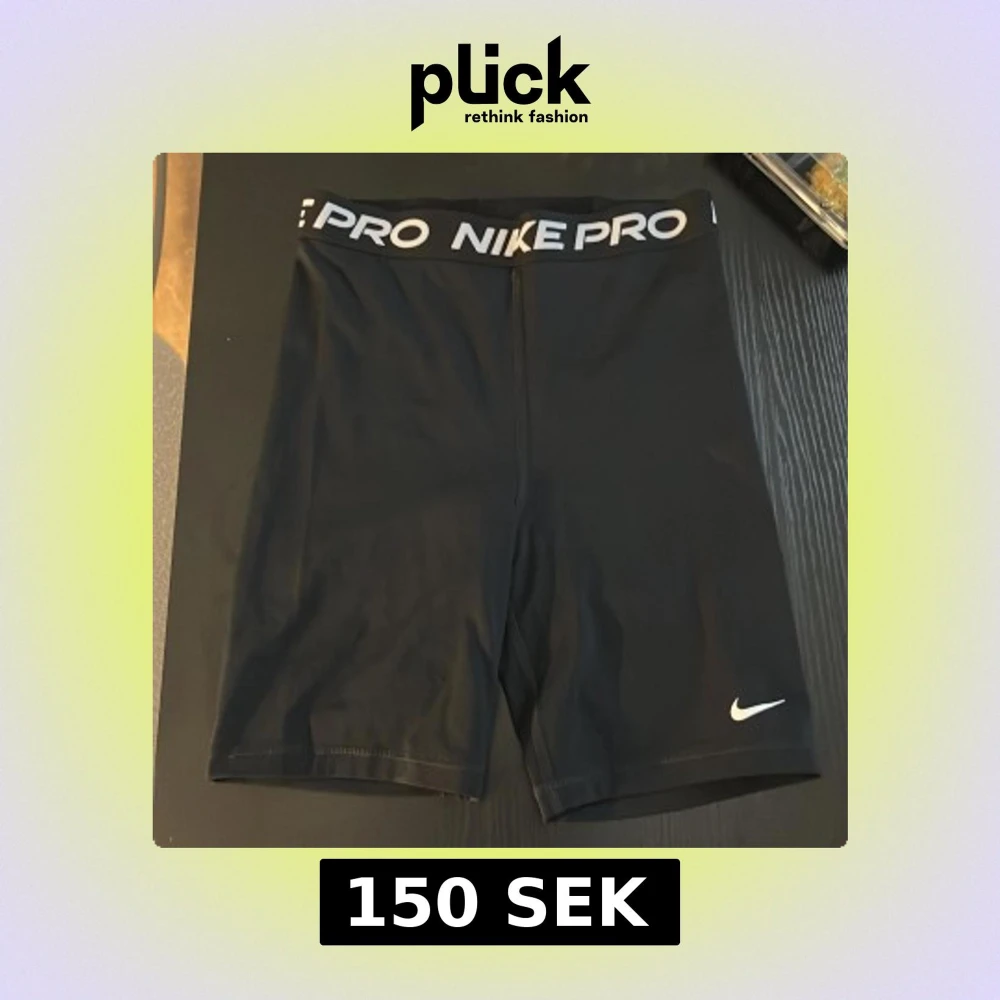 Säljer ett par svarta Nike Pro shorts med bred elastisk midja och vit logga. De är tighta och gjorda i ett stretchigt syntetmaterial som passar perfekt för träning. Snyggt och sportigt med Nike Pro-tryck runt midjan.