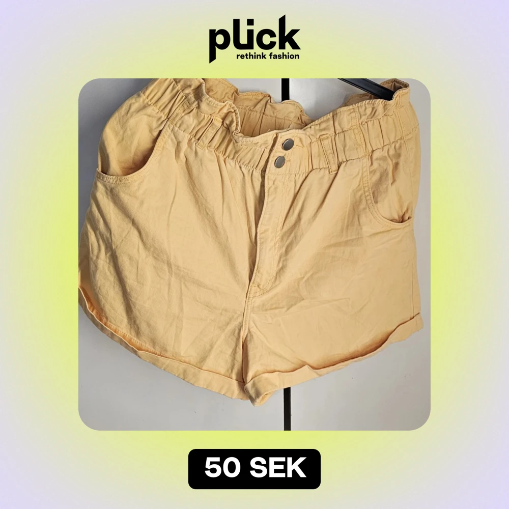 Säljer ett par bekväma beige shorts i bomull med resårmidja och knappdetalj. Perfekta för sommardagar eller en avslappnad vårlook. De har en lös passform och är i mycket bra skick. Passar perfekt för en dag på stranden eller en chill dag i parken.