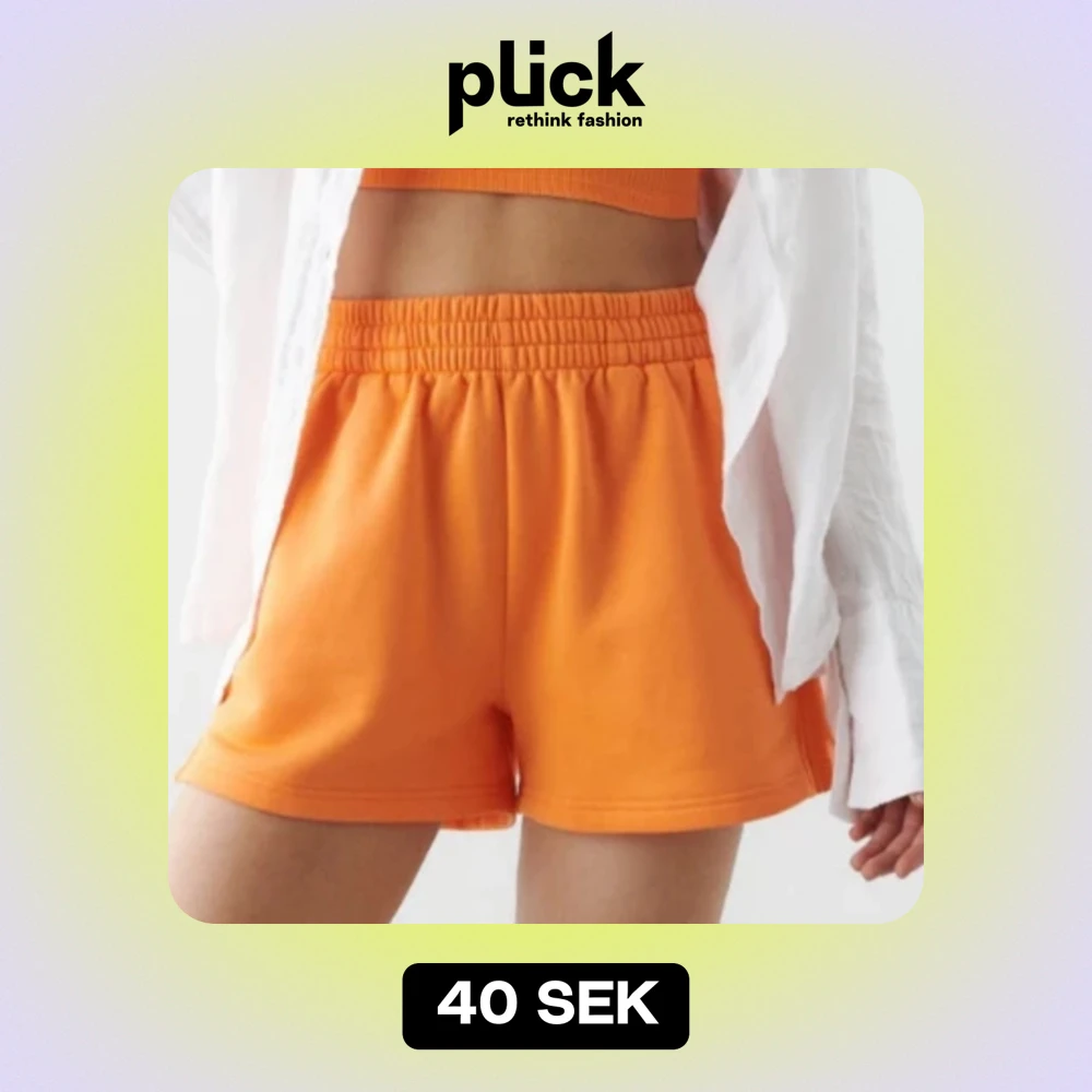 Ett par orange shorts med elastisk midja. Shortsen har en lös passform och är tillverkade i ett mjukt material.