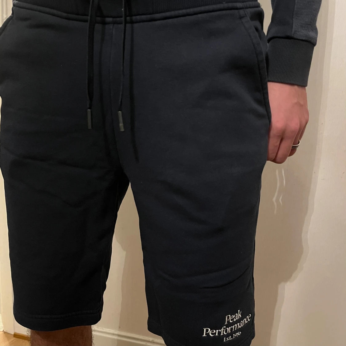 Snygga svarta shorts från Peak Performance med broderad logga på ena benet. Modellen har normal passform, dragsko i midjan och fickor både fram och bak. Perfekta för chill dagar eller när du vill ha en sportig look. Mjukt bomullsmaterial för extra komfort.