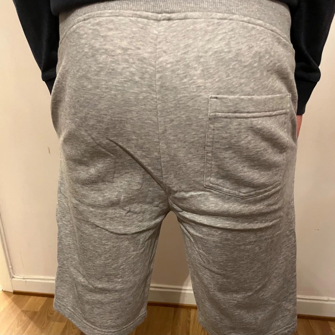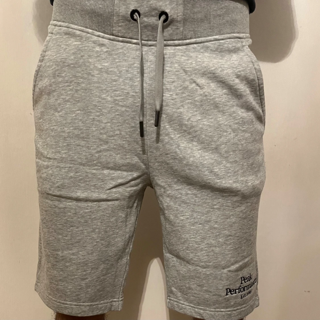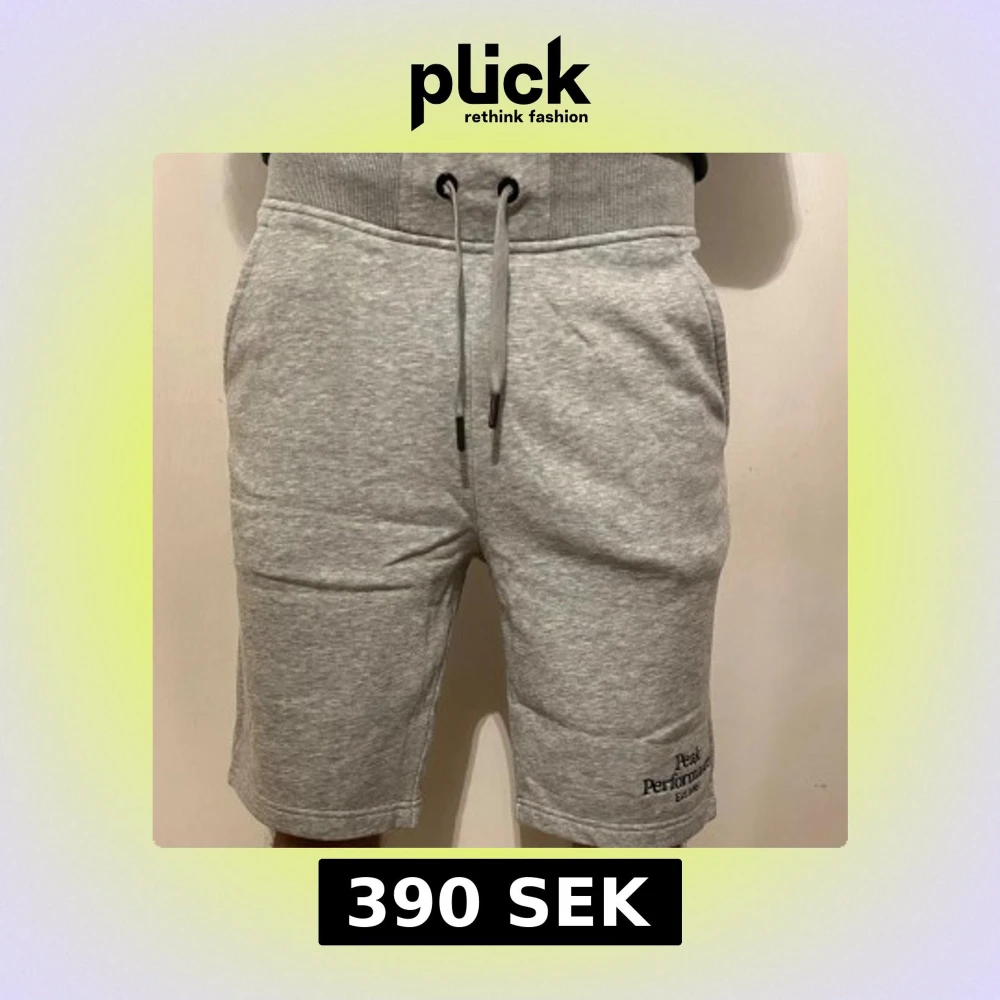 Snygga grå mjukisshorts från Peak Performance med broderad logga på benet. De har hög midja, snörning i midjan och fickor både fram och bak. Materialet är mjukt och skönt, perfekt för chill eller träning. Klassisk loose passform och stilren look.