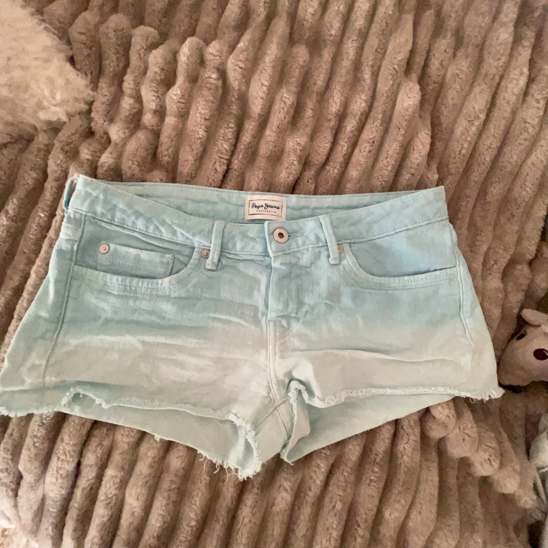 Blåa shorts från pepejeans är ganska lågmidjad. Midjemått: 38,5 X2 jätte söta fast är lite stor för mig priset är ganska lågt skulle inte vilja gå ner mera. Skulle gärna träffas🫶🏼💞
