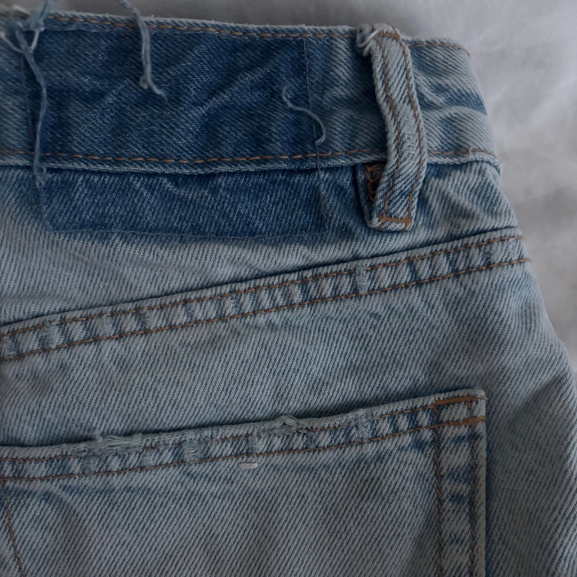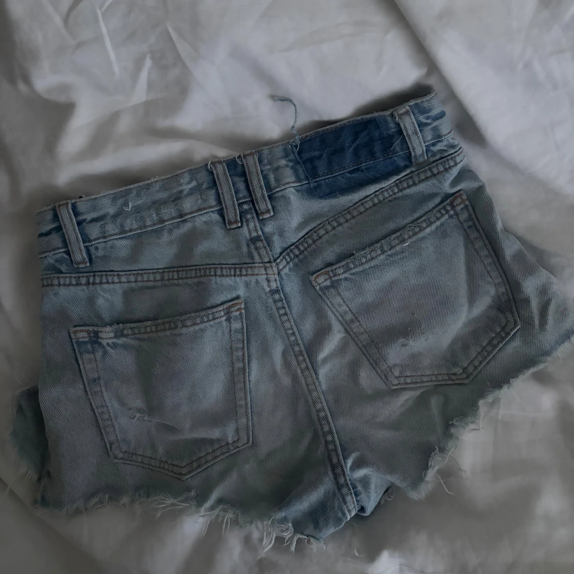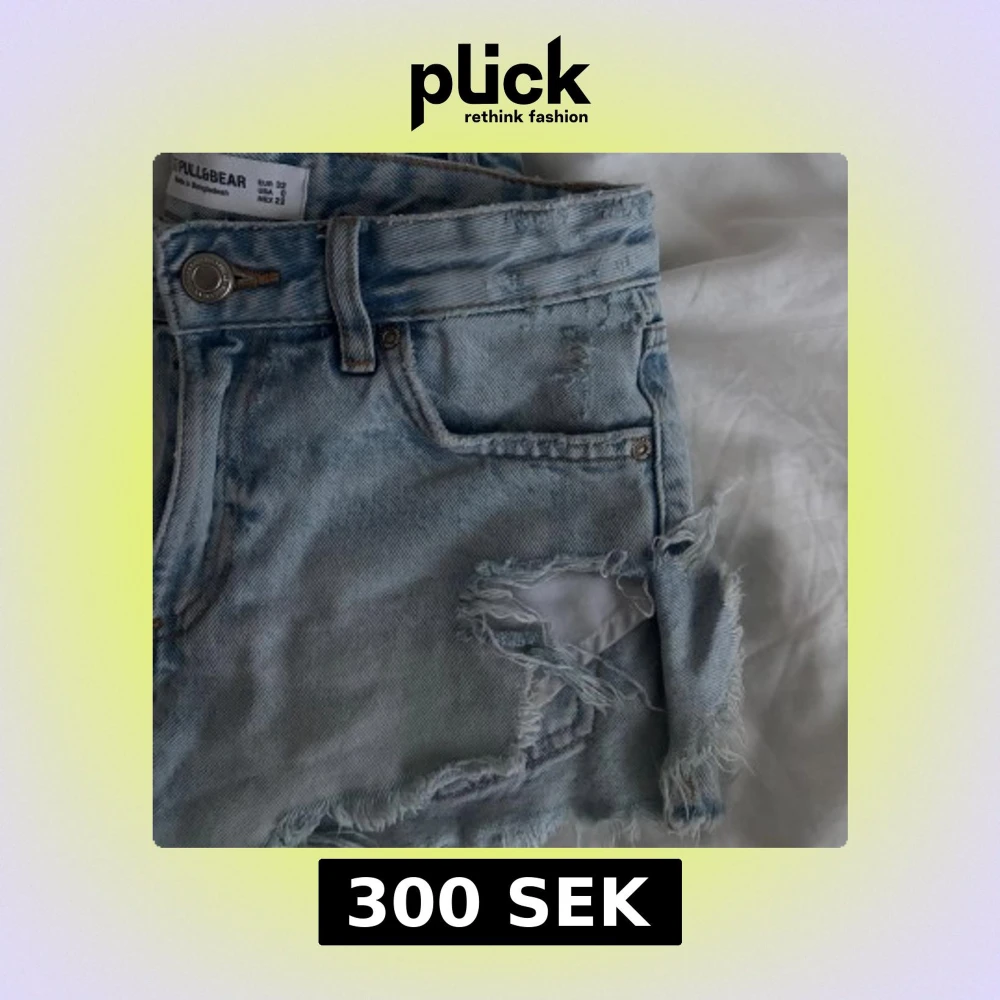 Säljer dessa jeansshorts med snygga slitningar från Pull&Bear! Toppen skick förutom en liten fläck högt upp på höger bakficka (sista bilden) och lappen som började gå av där bak som jag sedan tog bort - men tycker det blev en cool detalj! Pris går att diskuteras❣️