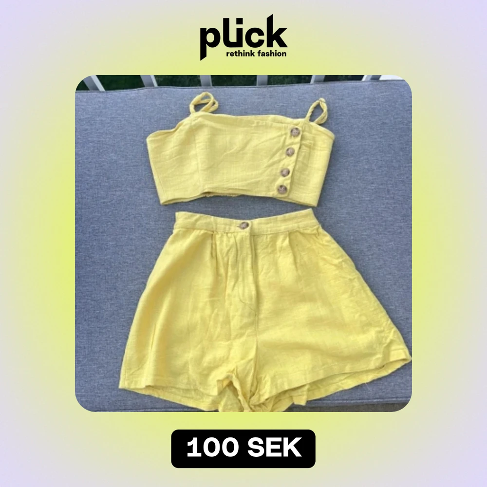Detta är ett somrigt gult sett Som jag sällan använder och säljer billigt för att de har ett litet hål i shortsen men det kan man lätt sy igen ! Jag köpte dem i Marocko och jag kan inte marockanska storlekar men skulle gissa att de är i stlk xxs-xs💛