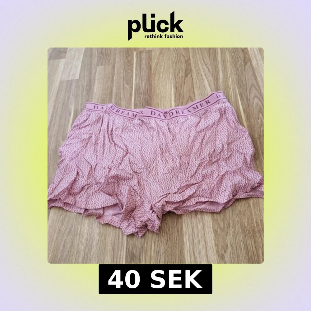 Säljer ett par rosa shorts från Serenity med ett subtilt mönster och elastisk midja med texten 'Daydreamer'. Perfekta för en avslappnad dag hemma eller som pyjamas.