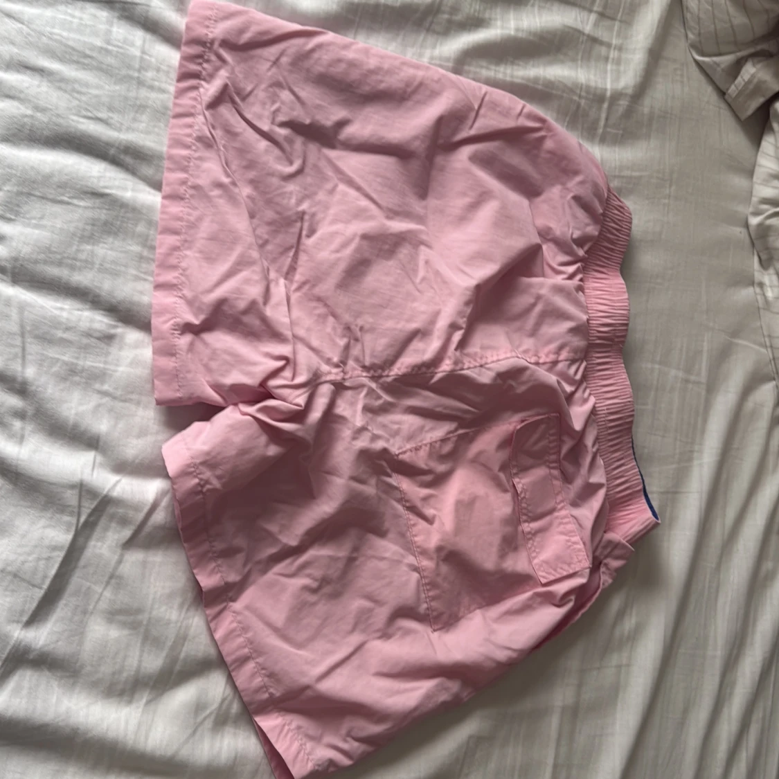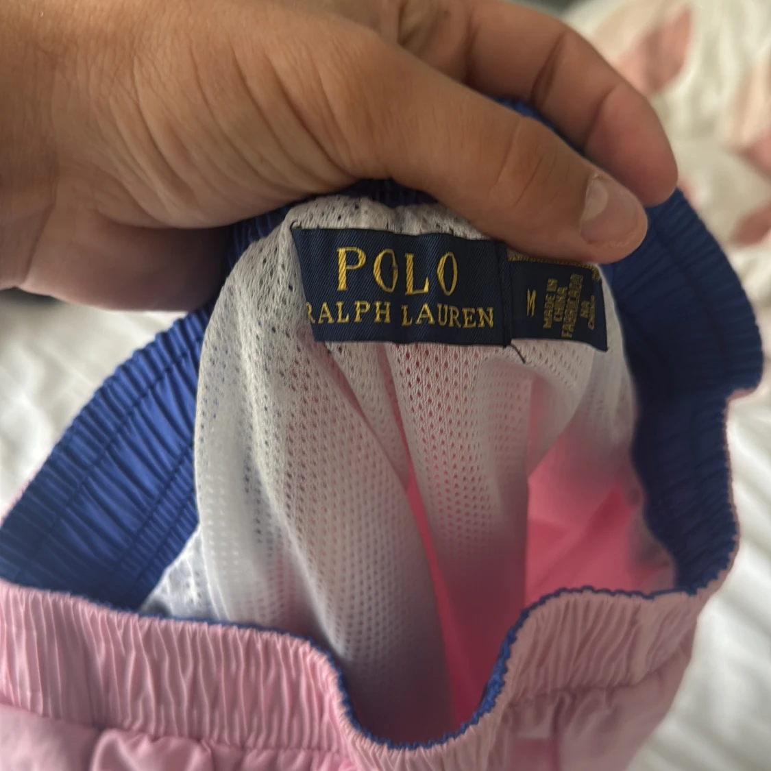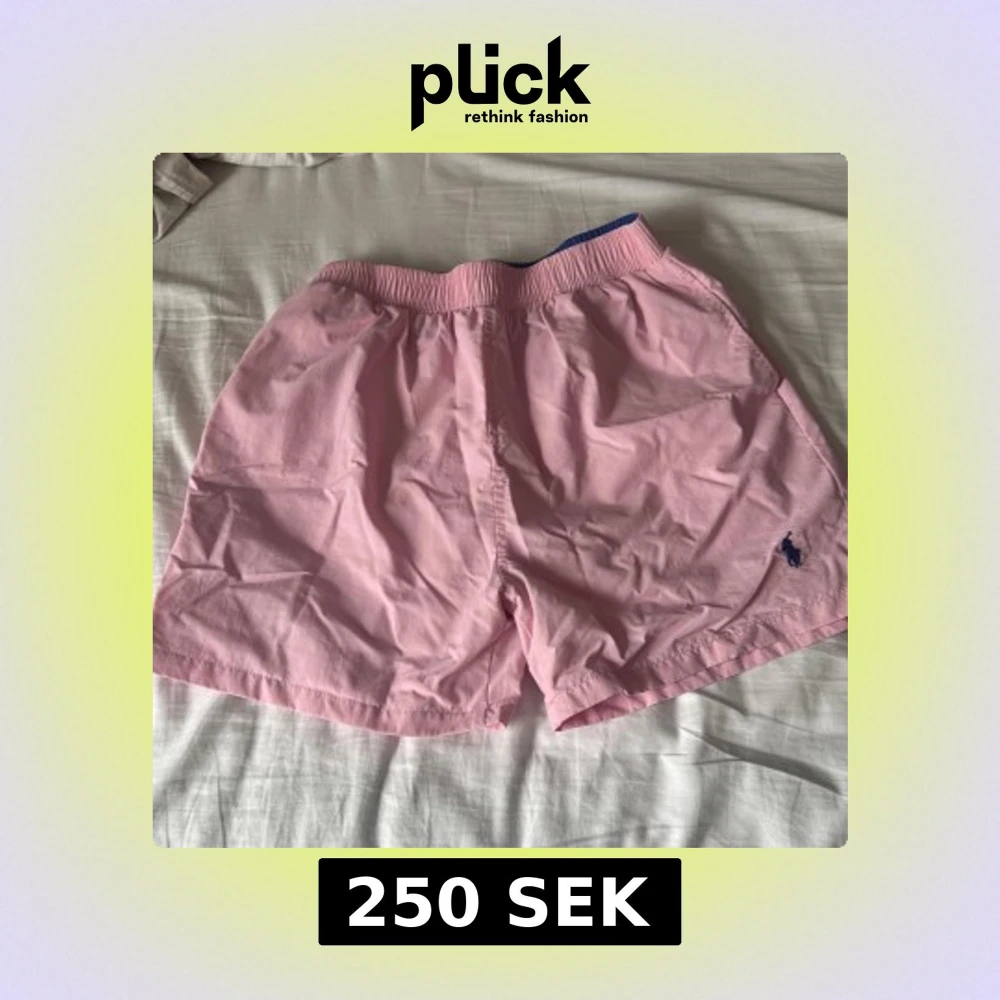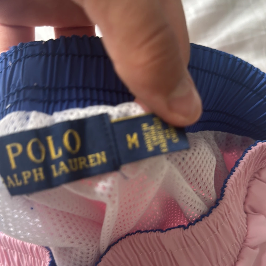 Säljer ett par ljusrosa badshorts från Polo Ralph Lauren med elastisk midja och innerbyxa i mesh. Klassisk design med blå logga broderad på benet och bakficka med lock. Perfekta för sommardagar vid stranden eller poolen.