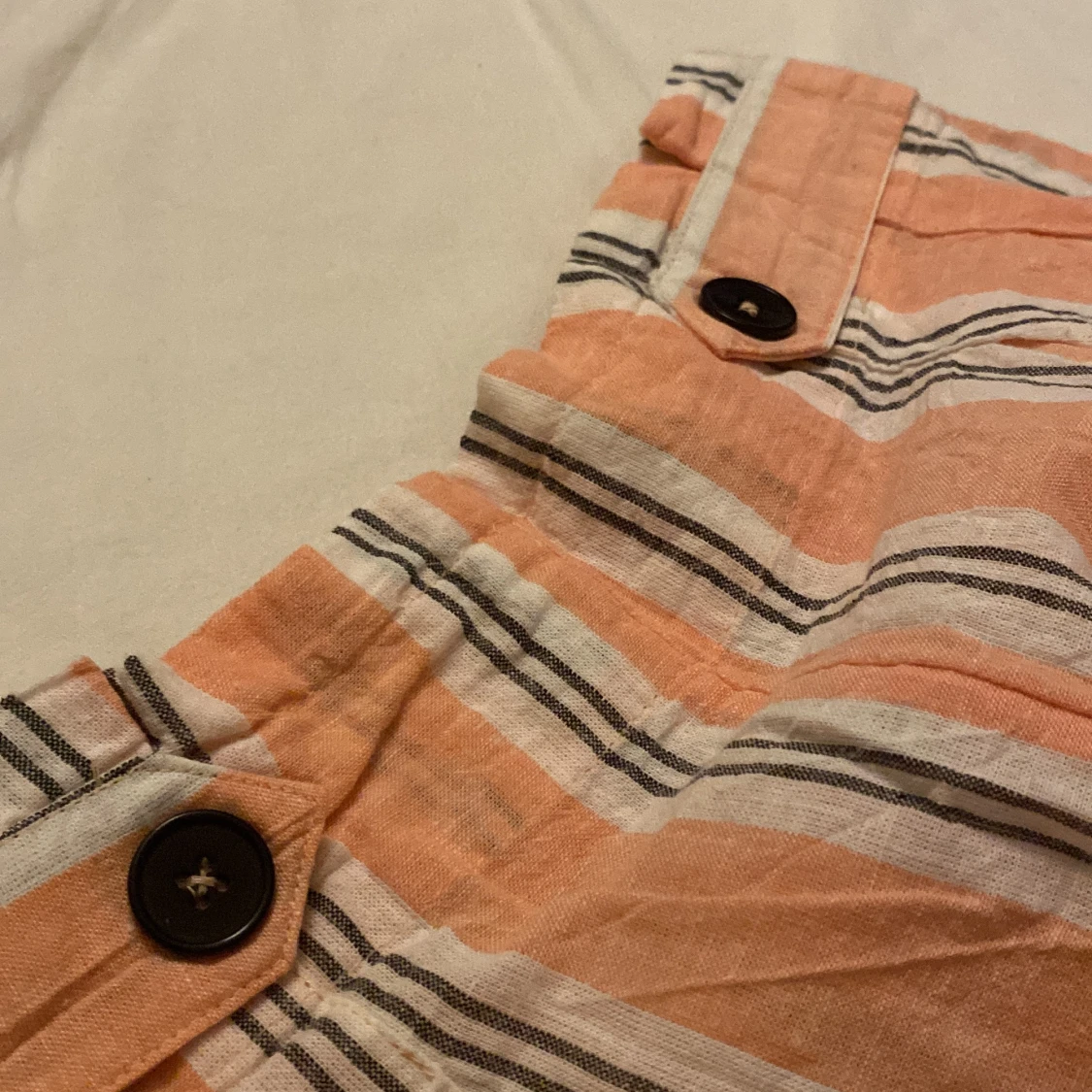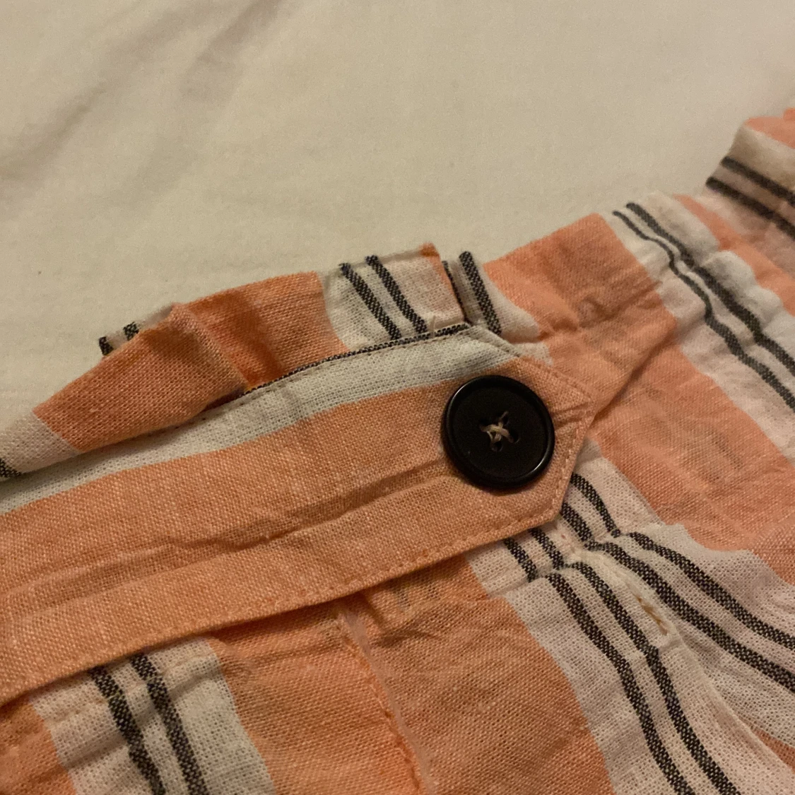 Säljer denna sköna linne-shorts från Stradivarius. Storlek M, passar som S. I fint skick. Resårband baktill. Fake-knappning. Randig.