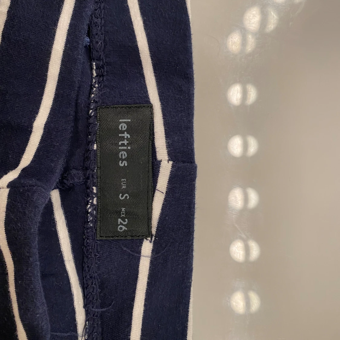 Säljer ett par snygga shorts från Lefties i storlek S men passar XS. De är marinblå med vita vertikala ränder och har en bekväm midwaist-passform. Materialet är mjuk bomull, perfekt för varma dagar. Stilen är casual och passar dig som gillar enkel och fräsch design.