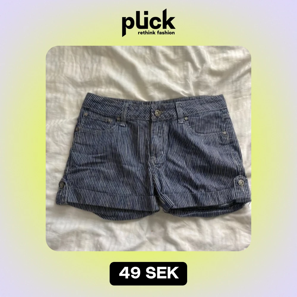randiga shorts i blått och vitt, står storlek 42 i men passar mig som en 38a! beror på hur löst man vill att dem sitter såklart, går att styla olika.