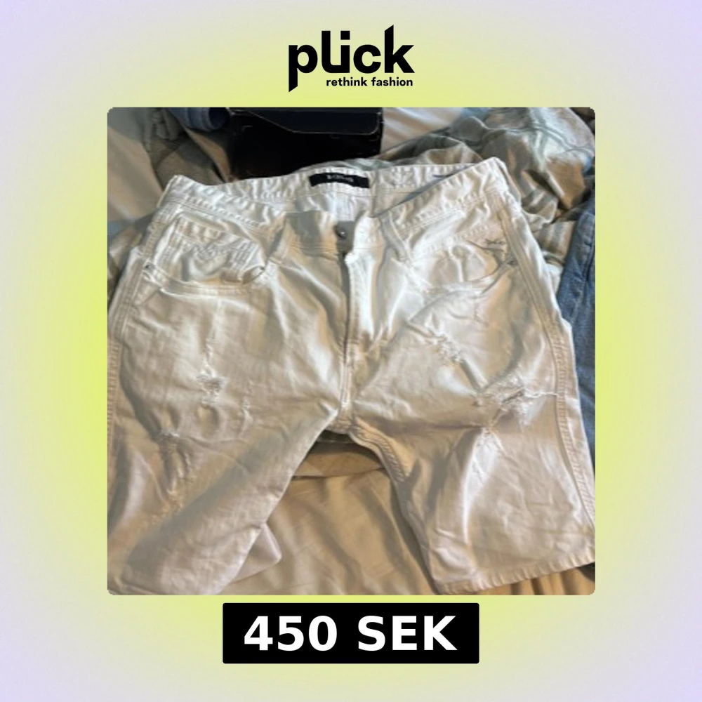 Säljer ett par vita jeansshorts från Replay, modell Anbass Short. Shortsen har slitna detaljer framtill, klassiska fem fickor och knappgylf. Perfekta för sommaren och ger en fräsch look till din outfit.