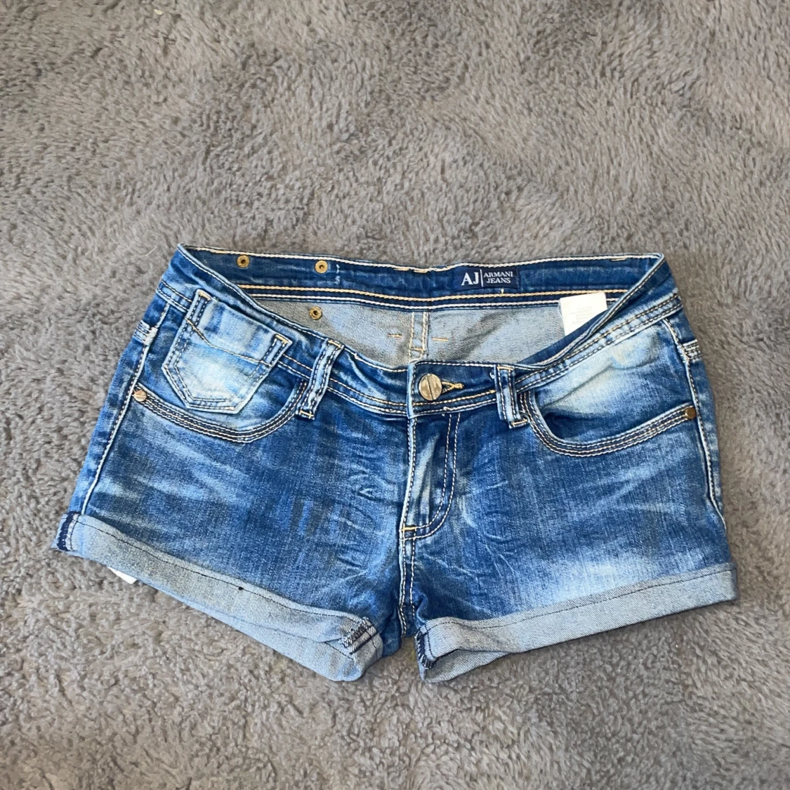 Armani shorts utan defekter, skrkv om du har frågor elelr funderingar 💕dom är lågmidjade och dom är 38 cm tvärs över midjan, och ytterbenslängd är 21 cm :)
