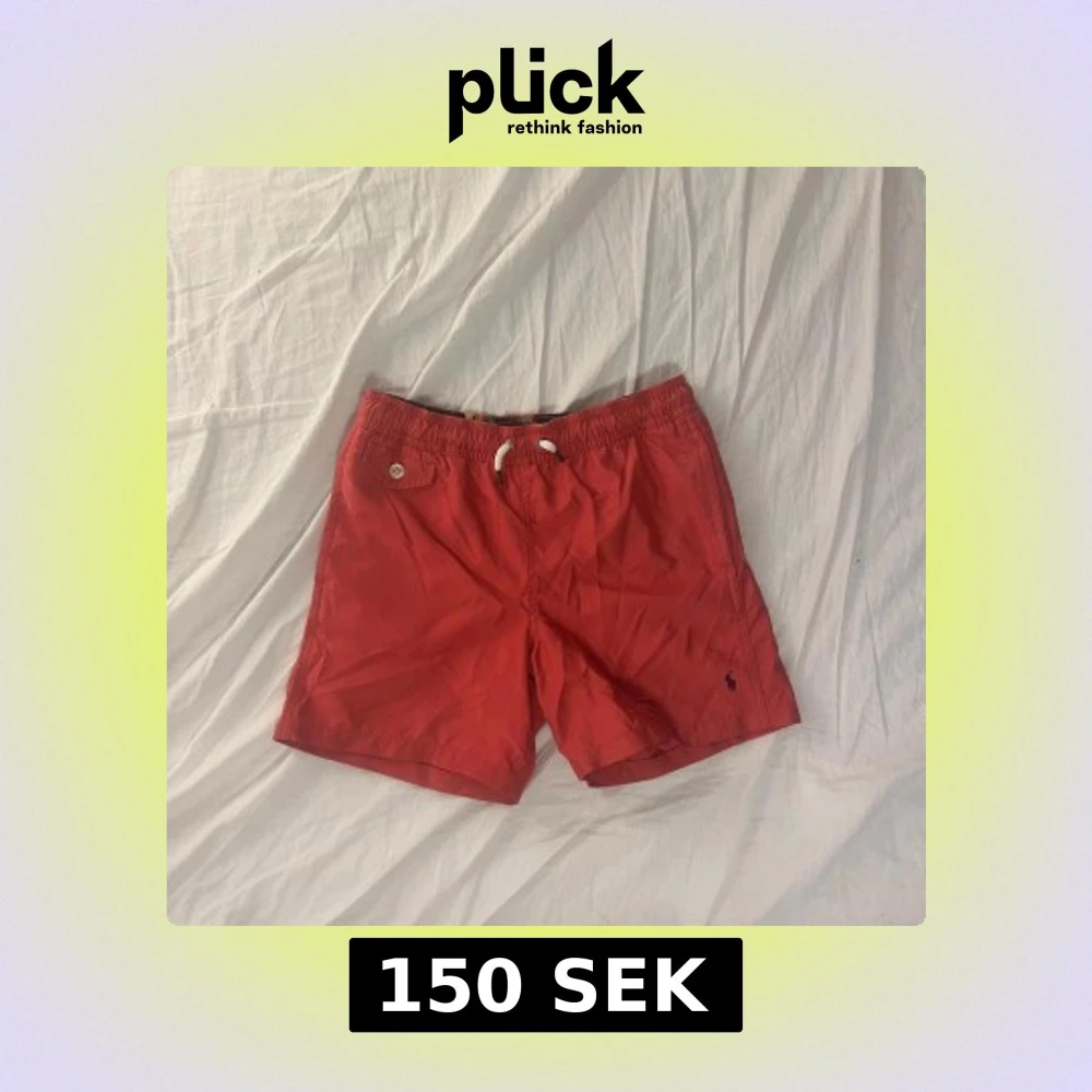 Snygga röda badshorts från Polo Ralph Lauren med elastisk midja och snörning. Shortsen har en liten broderad logga och en bakficka med knapp. Perfekta för sommarens stranddagar! Skriv vid minsta fundering! 👍