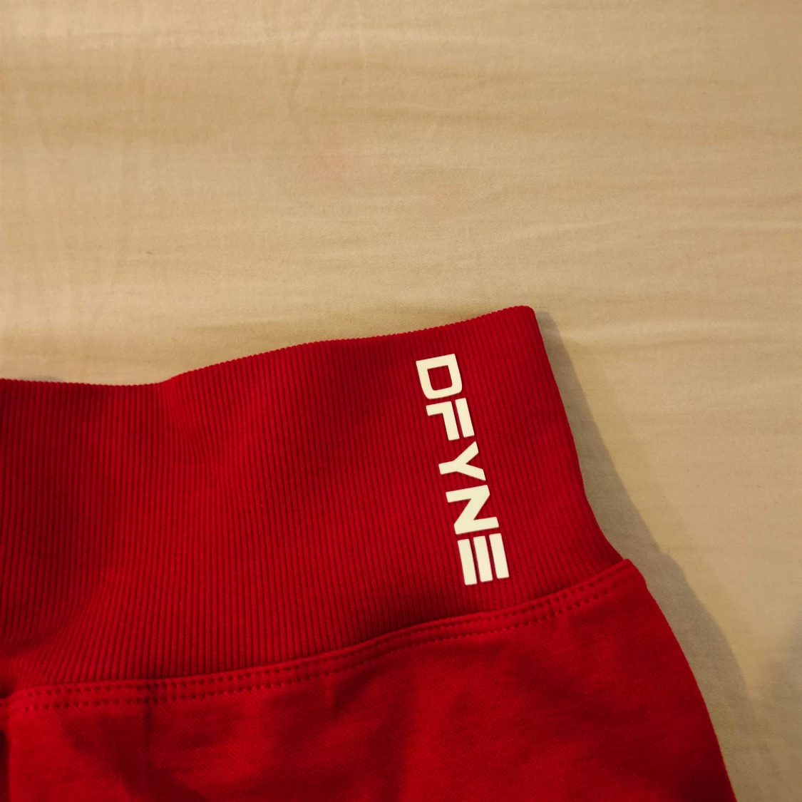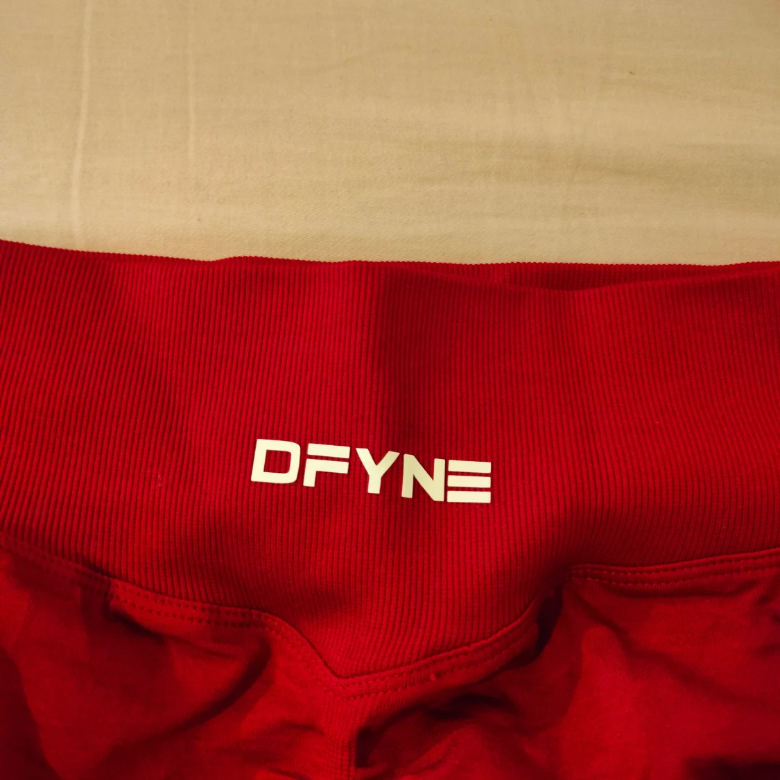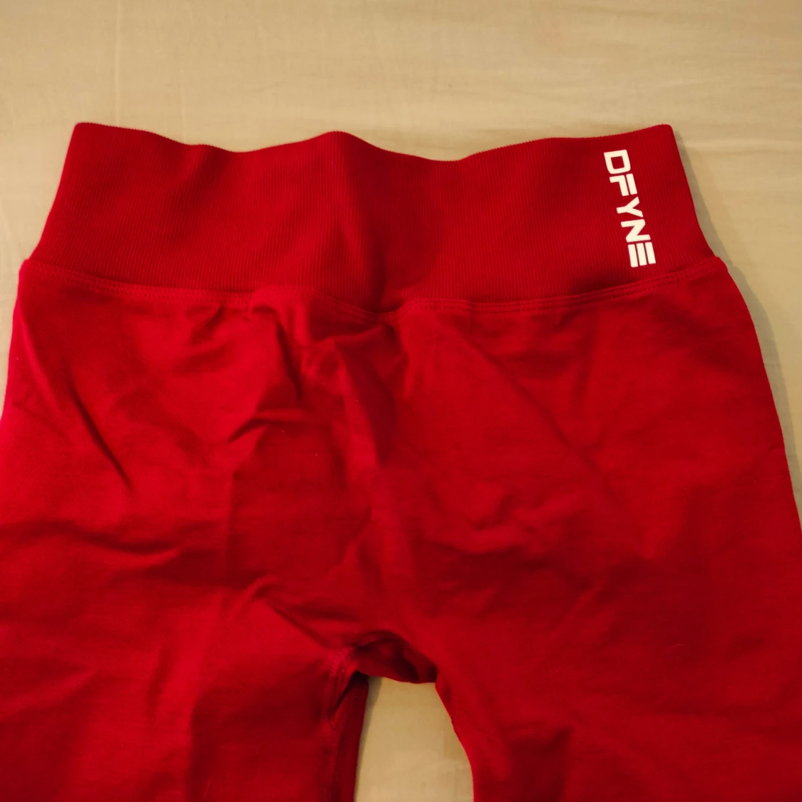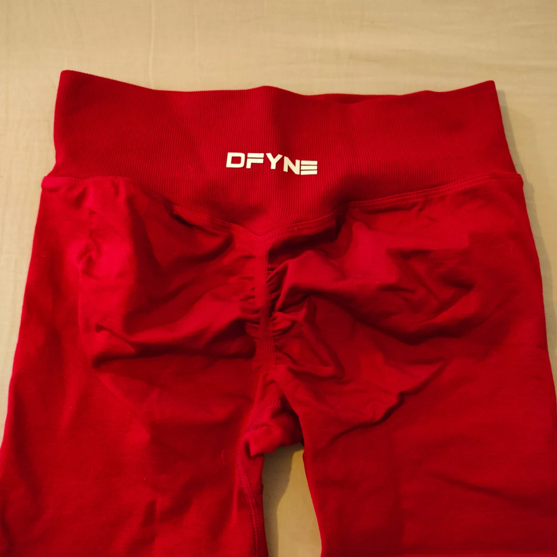 Snygga röda shorts från DFYNE med hög midja och scrunch-detalj bak för extra shaping. Stretchigt material som sitter tight och bekvämt, perfekt för gymmet eller andra träningspass. Logga framtill i vitt.