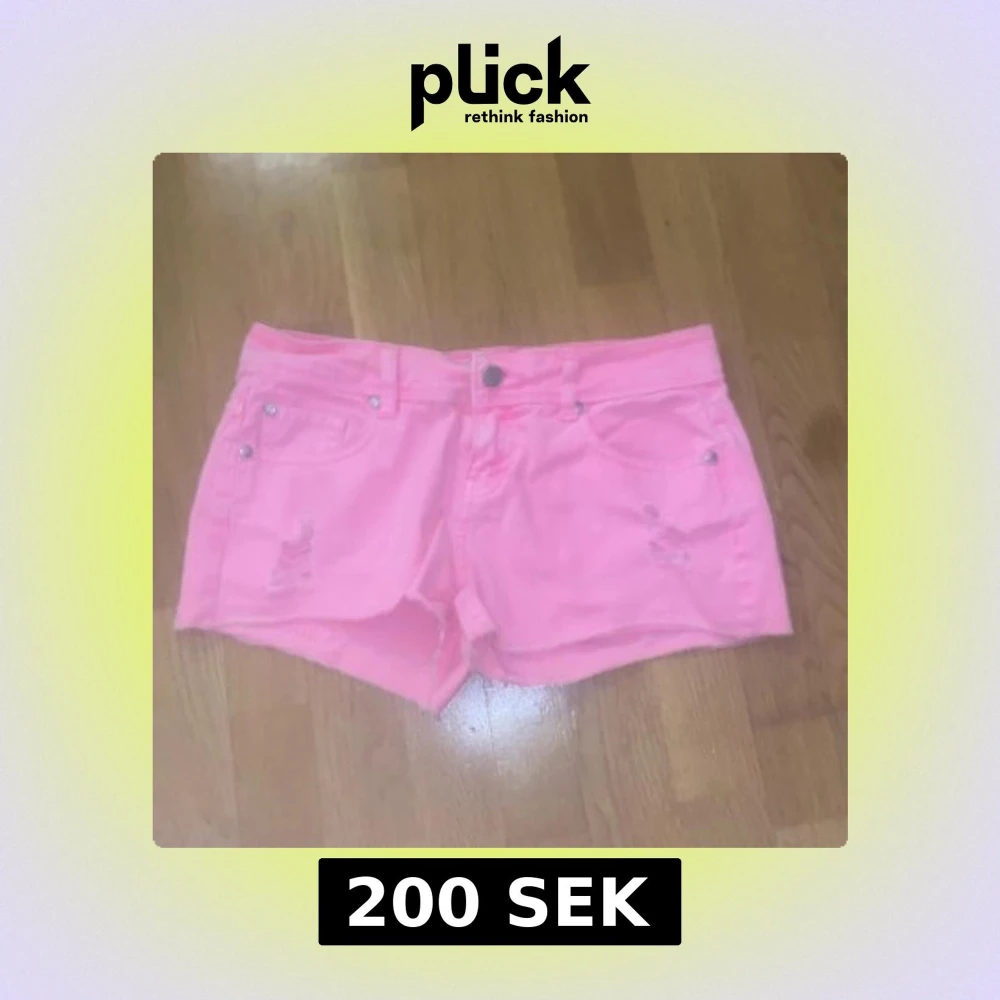 Säljer ett par rosa jeansshorts med råa kanter och slitna detaljer framtill. Shortsen har knapp och dragkedja. Perfekta för sommaren när du vill sticka ut lite extra! Midjemåttet rakt över är ca 38🩷🩷