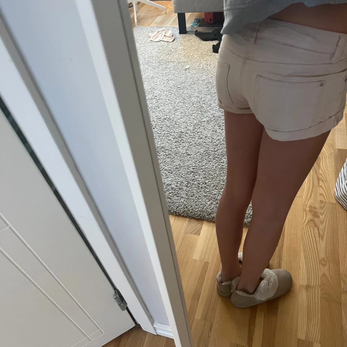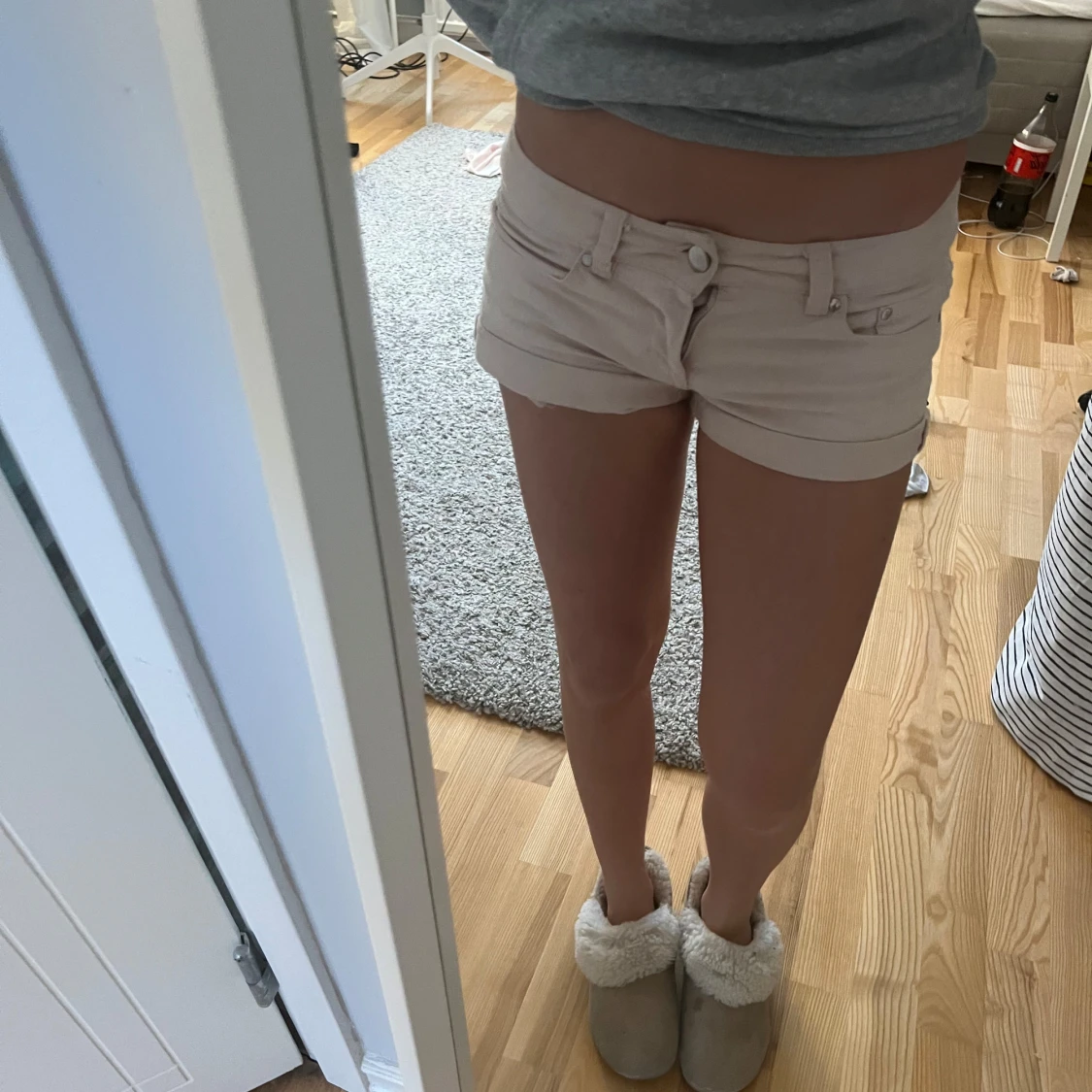 Snygga Rosa shorts lågmidjade från H&M med knappar och fickor fram. Perfekta för varma dagar och ger en avslappnad look. De är korta och har en bekväm passform.