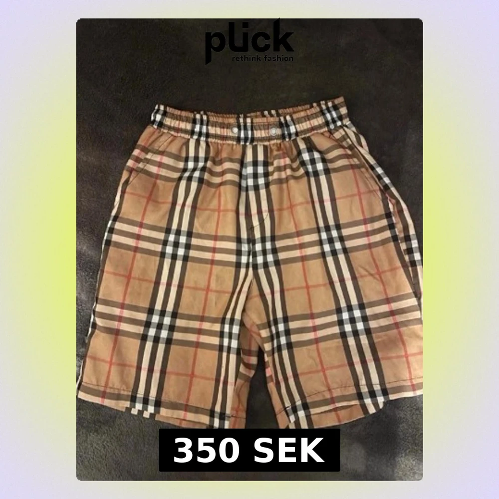 Säljer ett par klassiska Burberry shorts i beige med det ikoniska rutiga mönstret i svart, vitt och rött. De har elastisk midja och fickor både fram och bak. Perfekta för dig som vill ha en stilren och trendig look i sommar.