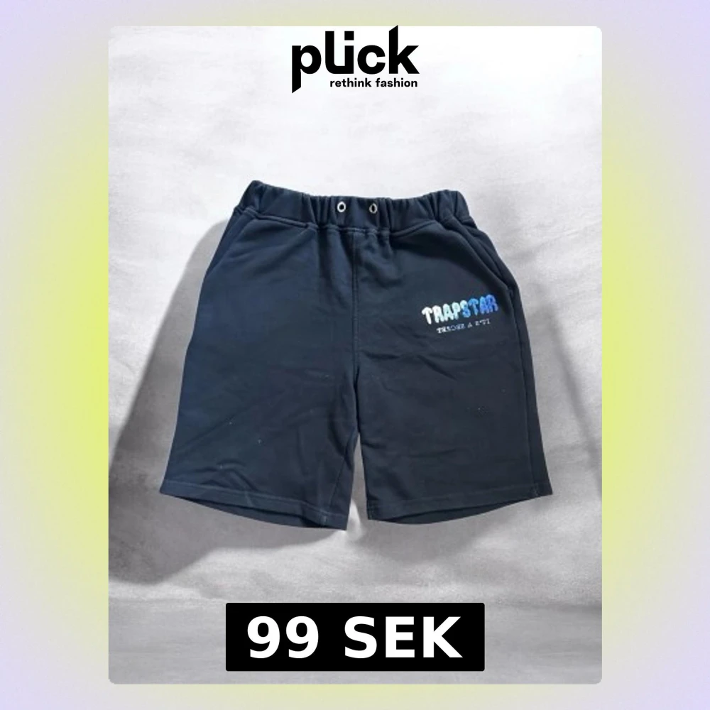 Svarta shorts från Trapstar med elastisk midja och två fickor. Tryck i blått och vitt på vänster ben där det står 'Trapstar' och 'Reload & Retry'. Perfekta för chill dagar och streetwear-stil.