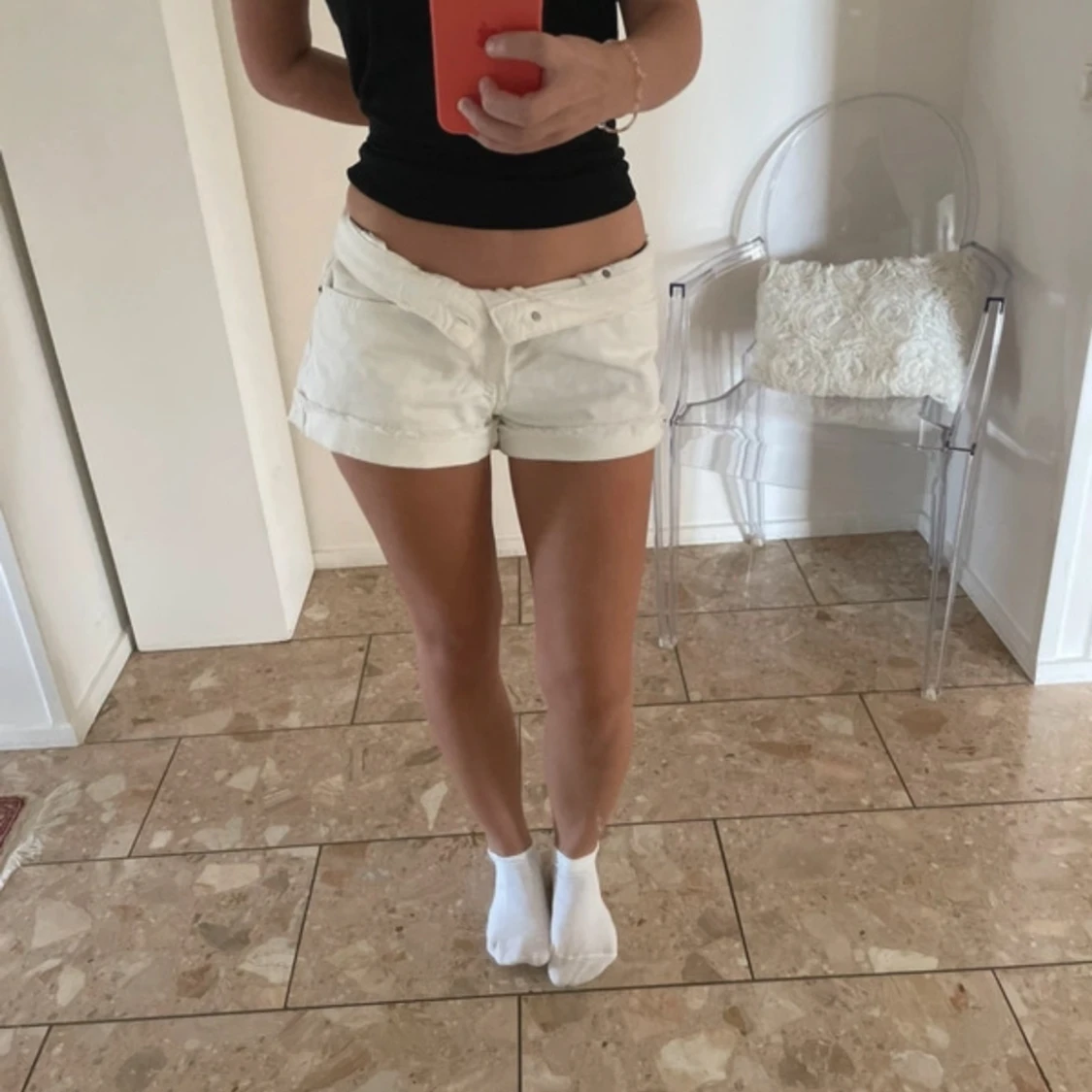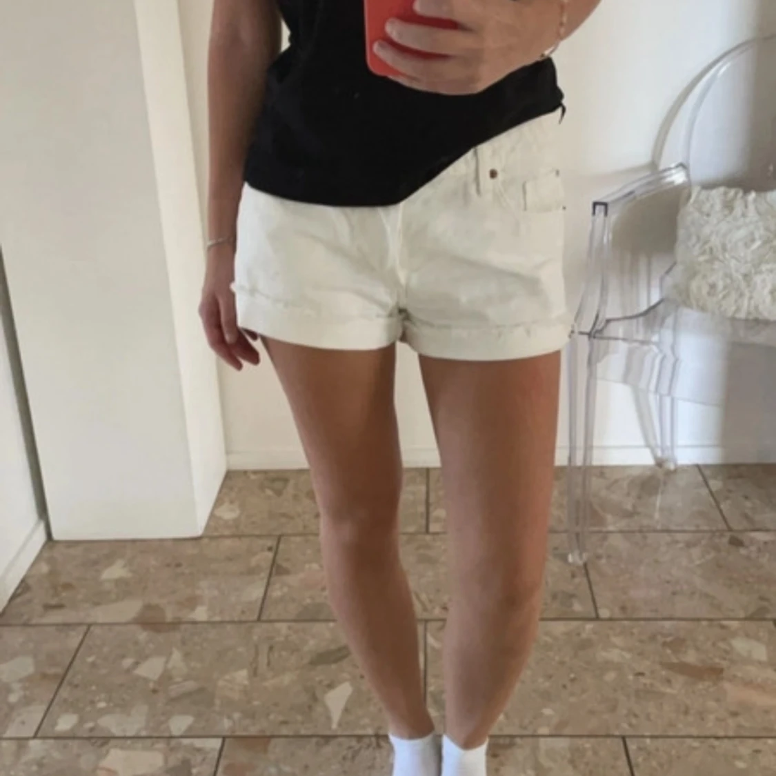 Vita jeansshorts i lowrise modell