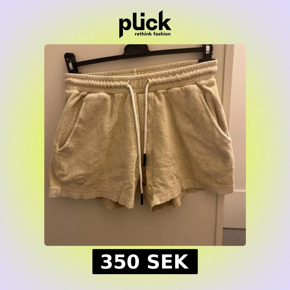 Säljer ett par beige shorts från OAS i mjuk frotté-bomull. De har elastisk midja med snörning, två sidofickor och en bakficka. Perfekta för sommardagar och chill vibes. Klassisk och avslappnad passform.